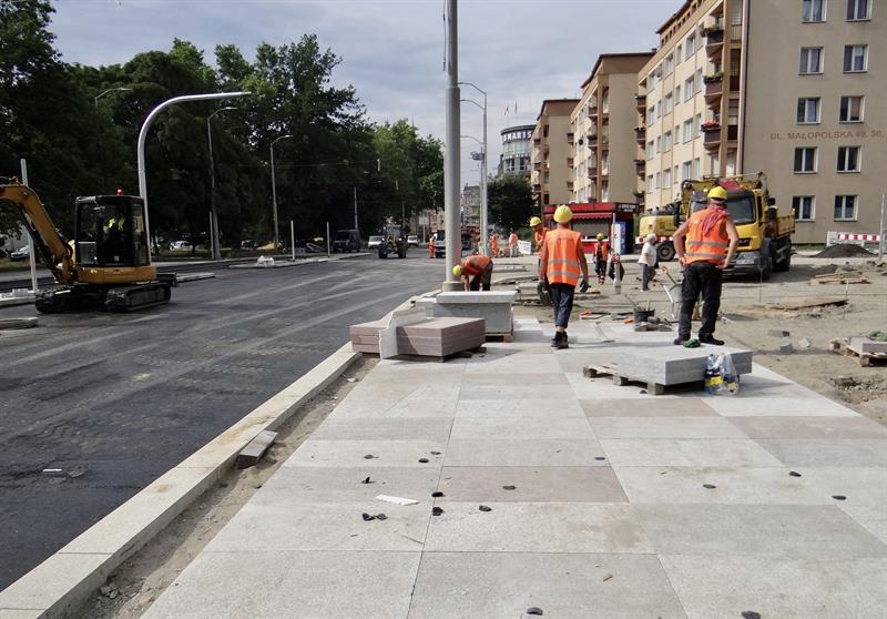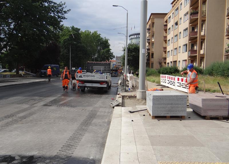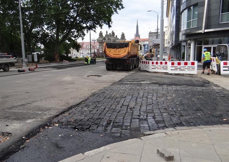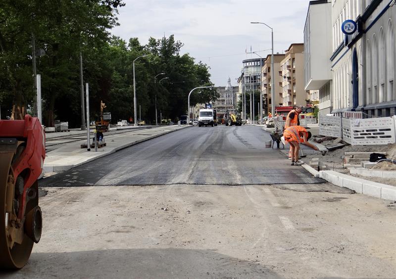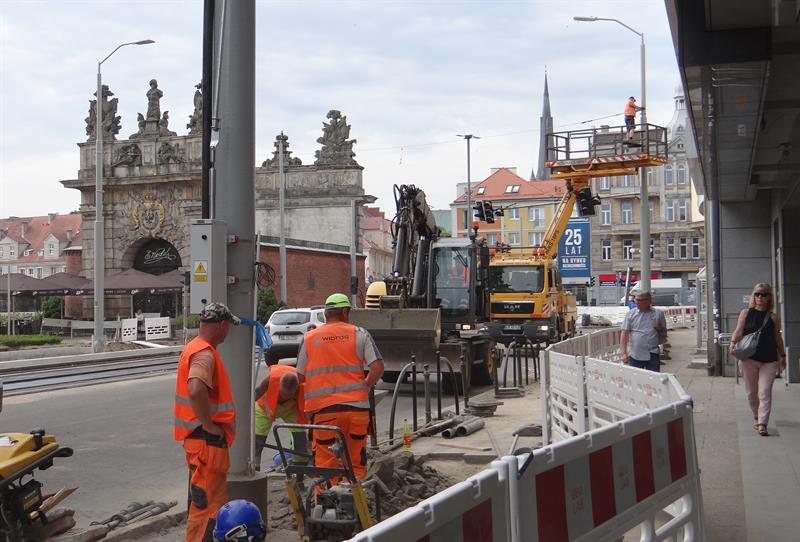 Trwają ostatnie prace drogowe przy przebudowie fragmentu jezdni ul. Jana Matejki wzdłuż nowego odcinka torowiska między skrzyżowaniem z ul. Marszałka Józefa Piłsudskiego do placów Hołdu Pruskiego i Żołnierza Polskiego na wysokości Bramy Królewskiej. Dla samochodów powinien on być otwarty od najbliższej niedzieli, 4 lipca. O ile planów drogowców z ZUE S.A., wykonawcy zadania, nie pokrzyżuje pogoda.
