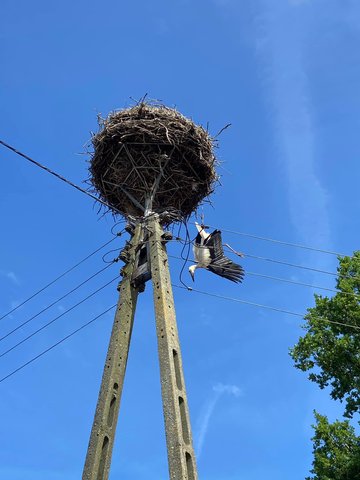 Do nietypowego zdarzenia doszło w niedzielę w miejscowości Przeczno w powiecie choszczeńskim. Bocian wypadł tam z gniazda na słupie elektrycznym i zwisł na sznurku głową w dół.