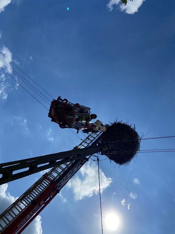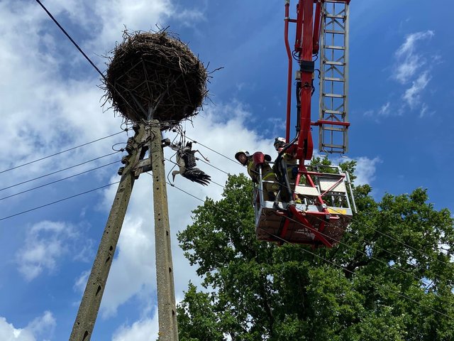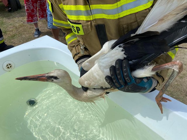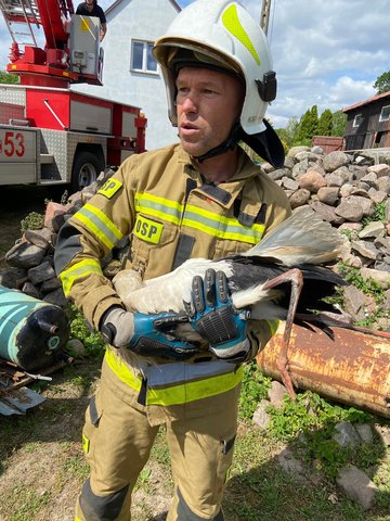 Na pomoc zwierzęciu wezwani zostali strażacy z Ochotniczej Straży Pożarnej w Bierzwniku i Jednostki Ratowniczo-Gaśniczej Choszczno. Wcześniej jednak pogotowie energetyczne musiało wyłączyć prąd na linii, przy której zawisł ptak. Dalej akcja strażaków poszła już sprawnie - bocian został uwolniony, umyty i przekazany pod opiekę służbom weterynaryjnym.