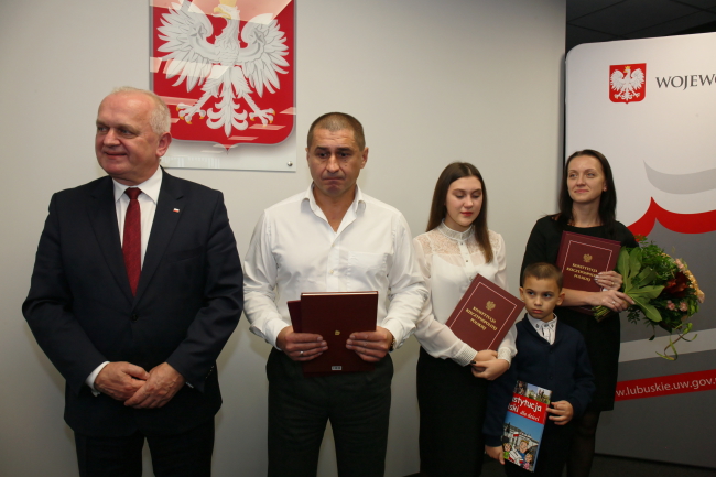 - Rzadko się zdarza, że w ciągu trzech i pół miesiąca uzyskuje się polskie obywatelstwo. Cieszę się bardzo, że mogę dzisiaj państwu, w imieniu prezydenta Andrzeja Dudy, wręczyć polskie obywatelstwo – powiedział wojewoda lubuski.