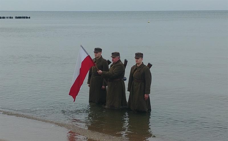 Muzeum Oręża Polskiego wraz z partnerami zorganizowało w minioną sobotę na kołobrzeskiej plaży inscenizację – Zaślubiny Polski z Morzem, poprzedzone wystrzałami z armaty.