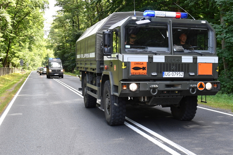 Bomby specjalistycznym pojazdem, tzw. bombowozem, są transportowane na jeden z zachodniopomorskich poligonów, gdzie będą detonowane. W porozumieniu ze sztabem kryzysowym transport jest konwojowany.