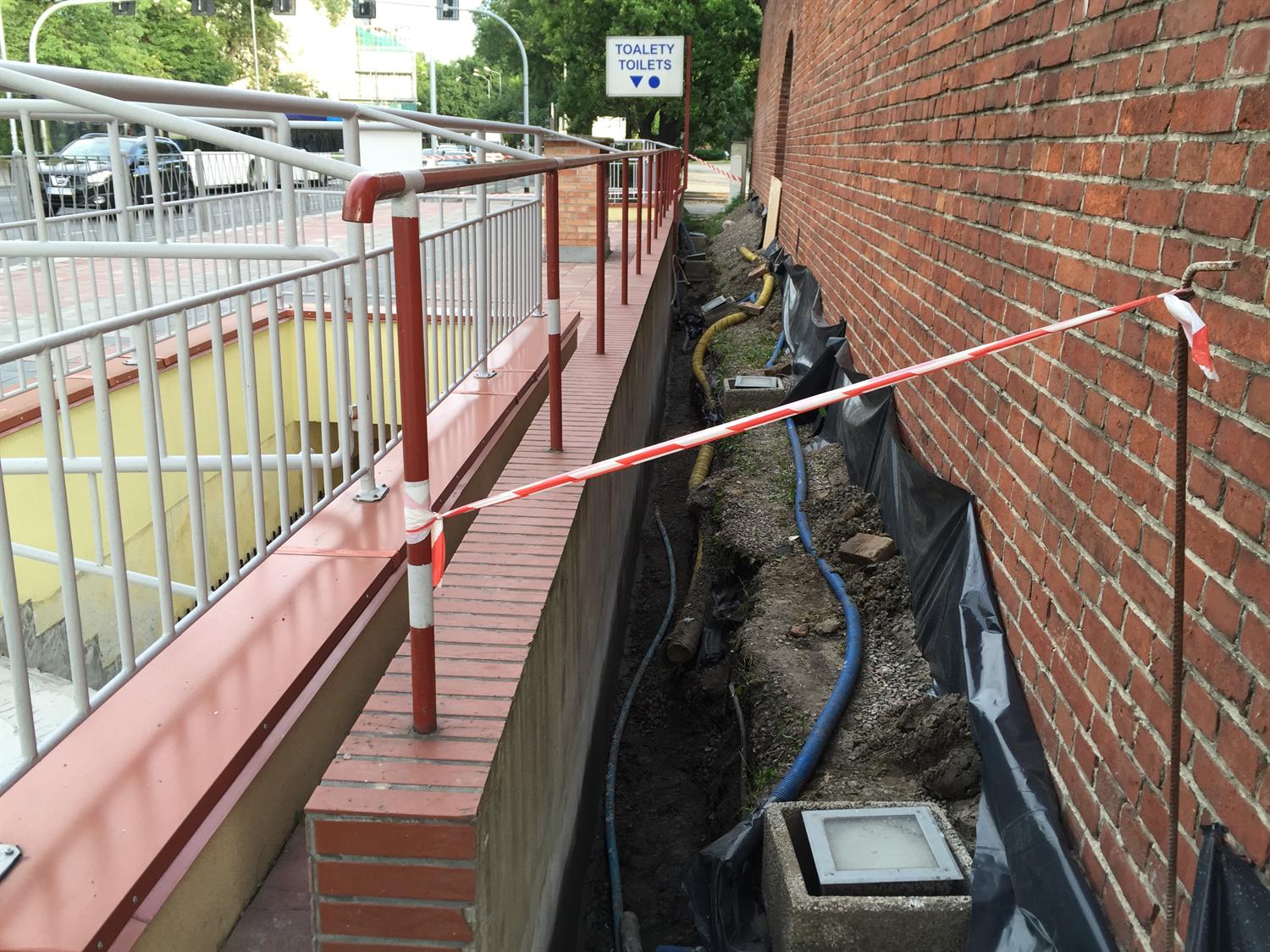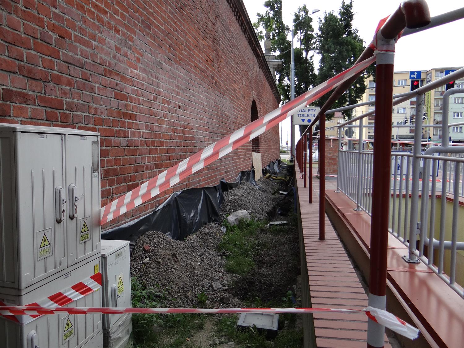 Natomiast trwa kolejny etap remontu toalety przyległej do Bramy Portowej. Obejmuje m.in. izolację przeciwwilgociową na ścianie bocznej, a także wymianę płytek przy wejściach do toalet, wyremontowane zostanie także wnętrze pomieszczeń, wymienione okna oraz kabiny WC.