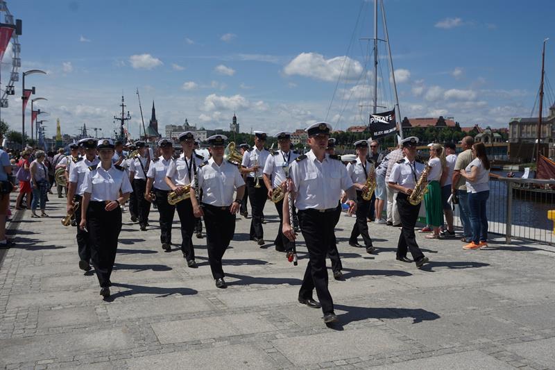 - Takie pokazy kojarzą mi się ze zlotem wielkich żaglowców, który co kilka lat odbywa się w Szczecinie. Wtedy orkiestry dęte z całej Polski maszerują wraz z żeglarzami do amfiteatru na rozdanie nagród - przypomniał nam pan Kamil, jeden z licznych widzów, który regularnie przychodzi na morskie imprezy.