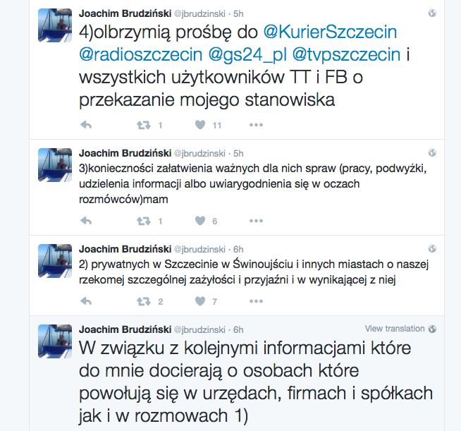 Poseł Joachim Brudziński, „numer drugi" w Prawie i Sprawiedliwości poprzez media społecznościowe zwrócił się z nietypową prośbą. Jak twierdzi docierają do niego informacje, że w Szczecinie i regionie są ludzie, którzy próbują załatwić sobie różne rzeczy powołując się na znajomość z parlamentarzystą PiS. Brudziński na Twitterze oświadczył, że takim osobom należy powiedzieć: „spierzaj dziadu".