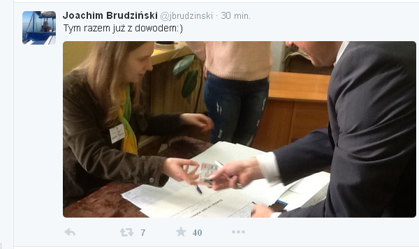 Teściowie Joachima Brudzińskiego, którzy na wybory przyjechali z Koszalina i mieli ze sobą zaświadczenia wyborcze, bez problemu zagłosowali. Ich zięć nie miał tyle szczęścia w czasie rodzinnego głosowania.