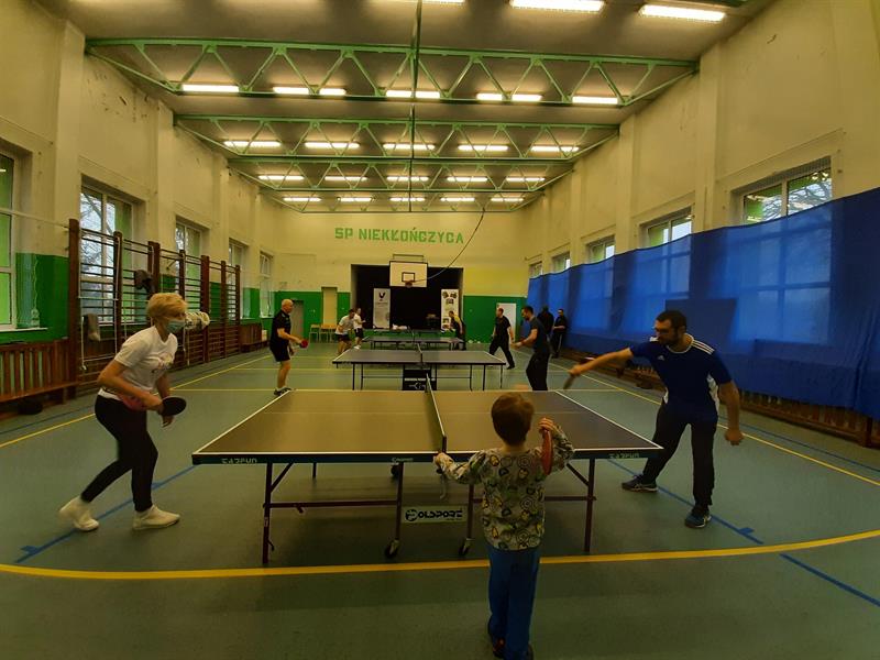 - Ta dyscyplina zaczyna się popularyzować, ale wciąż jeszcze jest niszową, bo prawie nie istnieje w mediach - mówi Rafał Stawiński, który gra amatorsko i startuje w licznych turniejach; pomagał w prowadzeniu tego w Niekłończycy. - To bardzo dobra forma aktywności ruchowej. Podczas gry w tenisa stołowego pracują takie mięśnie nóg i kręgosłupa, których się na co dzień nie używa, bo są izolowane. Jest mnóstwo przysiadów (jeśli ktoś gra aktywnie), to ogromny wysiłek. Dwie godziny takiego aktywnego poruszania się przy stole, to wydatek energetyczny około tysiąca kalorii. Naprawdę organizm się przy tym wysiłku fajnie rozwija. Nie ma tu ograniczeń wiekowych. W Japonii i Chinach grają dzieci od trzech lat, jeszcze zza stołu nie wystają. Starsi ludzie, którzy są mniej sprawni fizycznie, mogą sobie po prostu tę piłeczkę poprzebijać, też będzie jakaś aktywność ruchowa.