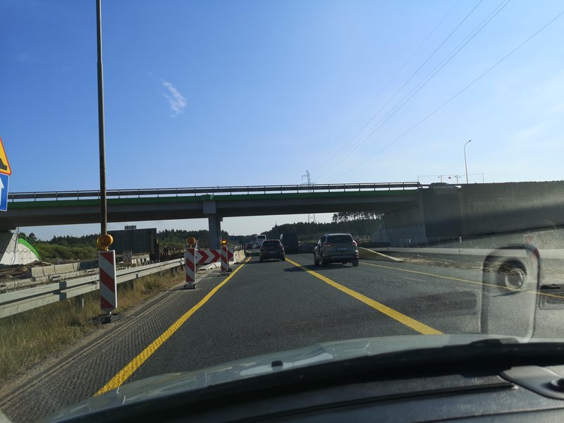 Tym razem nie było żadnych problemów z pokonaniem węzła w Kijewie, gdzie przez wiele ostatnich tygodni tworzyły się się potężne wielokilometrowe korki, na których pokonanie trzeba było stracić nawet i dwie godziny. Powodem były prace związanie z budową jednej nitki estakady prowadzącej do Stargardu. Na czas wakacji Budimex obiecywał, i słowa dotrzymał, że otwarte zostaną po dwie nitki prowadzące nad morze i z powrotem. Nic dziwnego, że dziś nie tworzyły się na tej trasie żadne korki (patrz fot). Przejazd był płynny.