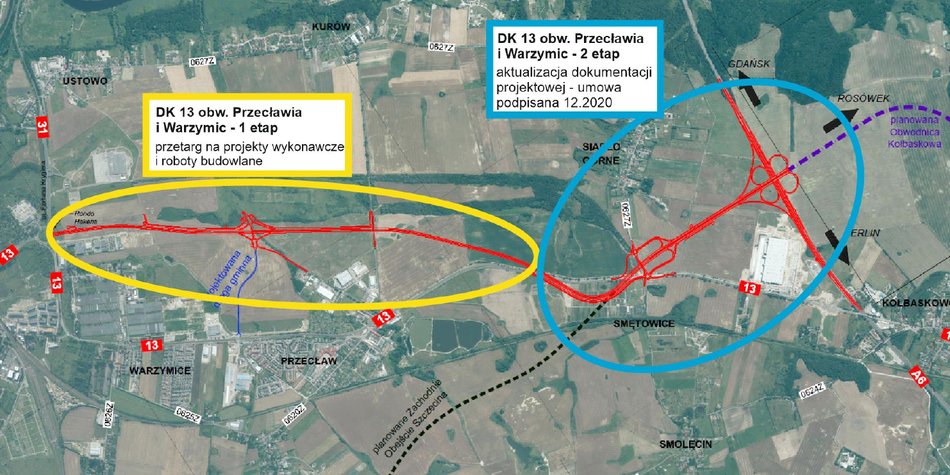 - W międzyczasie zaszła konieczność dokonania zmian w pierwotnym projekcie w obszarze węzła Szczecin Zachód, co również miało związek z ujęciem w rządowym Programie budowy 100 obwodnic obwodnicy Kołbaskowa w ciągu DK13. Spowodowało to podział inwestycji na dwa odcinki - wyjaśnia Mateusz Grzeszczuk.