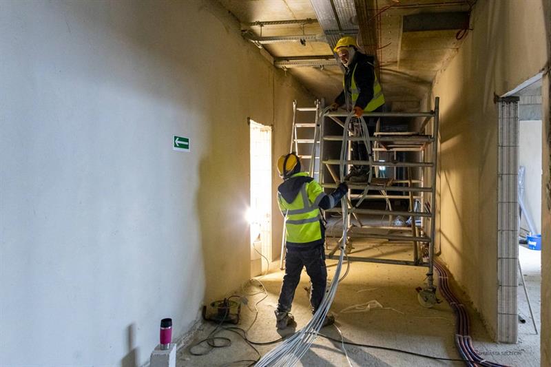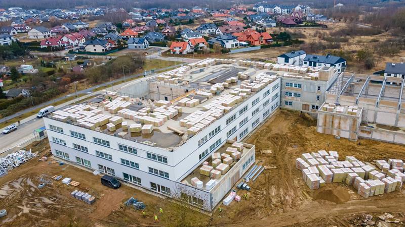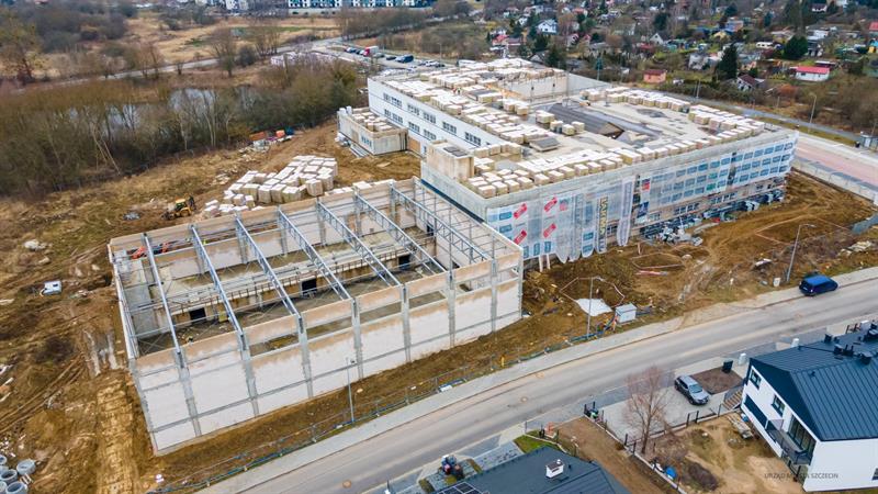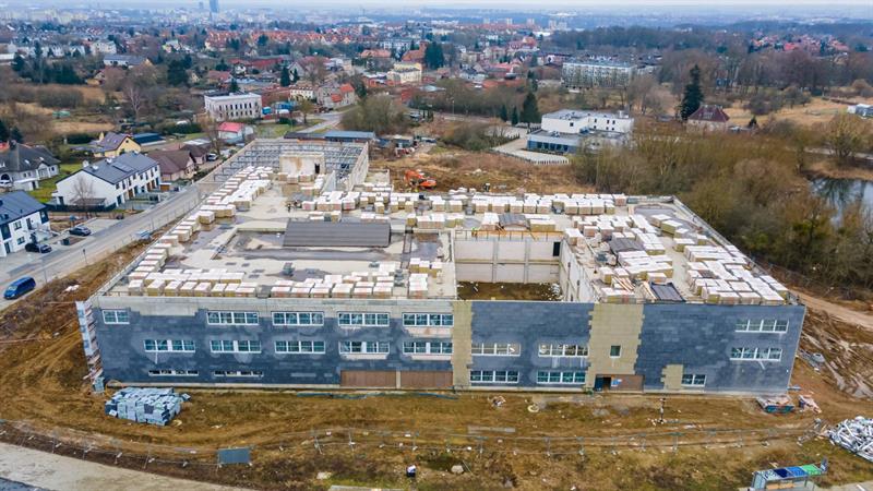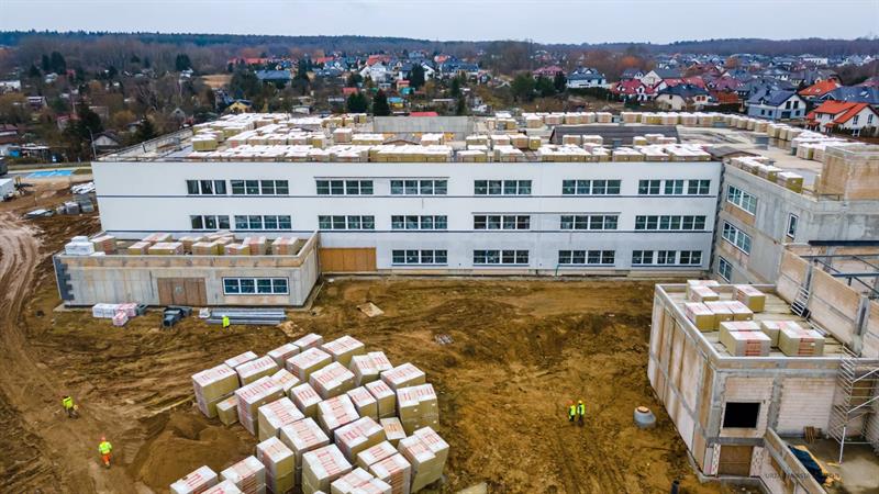 - Po zabezpieczeniu zaplecza budowy i pracach przygotowawczych zrealizowano już część robót konstrukcyjnych na obiekcie - przekazuje Piotr Zieliński, rzecznik prasowy miasta ds. inwestycji. - Wykonana została stalowa konstrukcja dachu nad salą gimnastyczną. Wewnątrz trwają aktualnie prace murarskie oraz tynkarskie. Prowadzony jest także montaż instalacji elektrycznych i sanitarnych. Na plac budowy trafiają dostawy materiałów budowlanych niezbędnych do rozpoczęcia w najbliższych dniach prac dekarskich na obiekcie.
