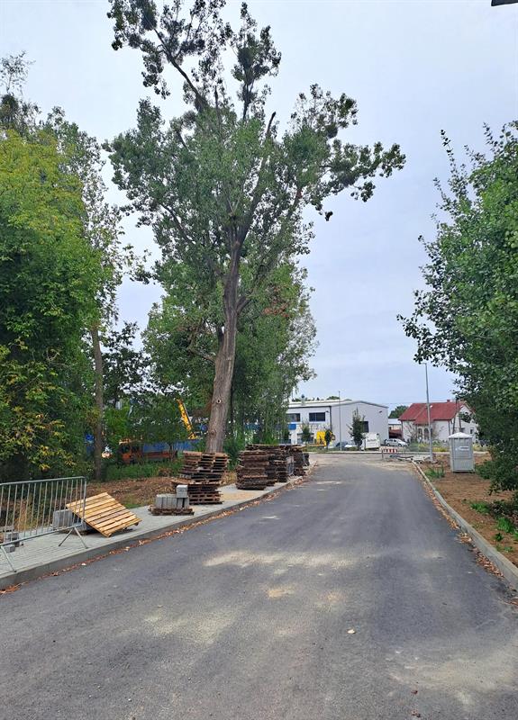 Termin zakończenia prac to 21 października. Całe przedsięwzięcie obejmuje budowę drogi gminnej o łącznej długości około 481,06 metra. Wykonawcą robót jest firma Strabag. Wartość zadania 3 451 712,36 zł brutto.