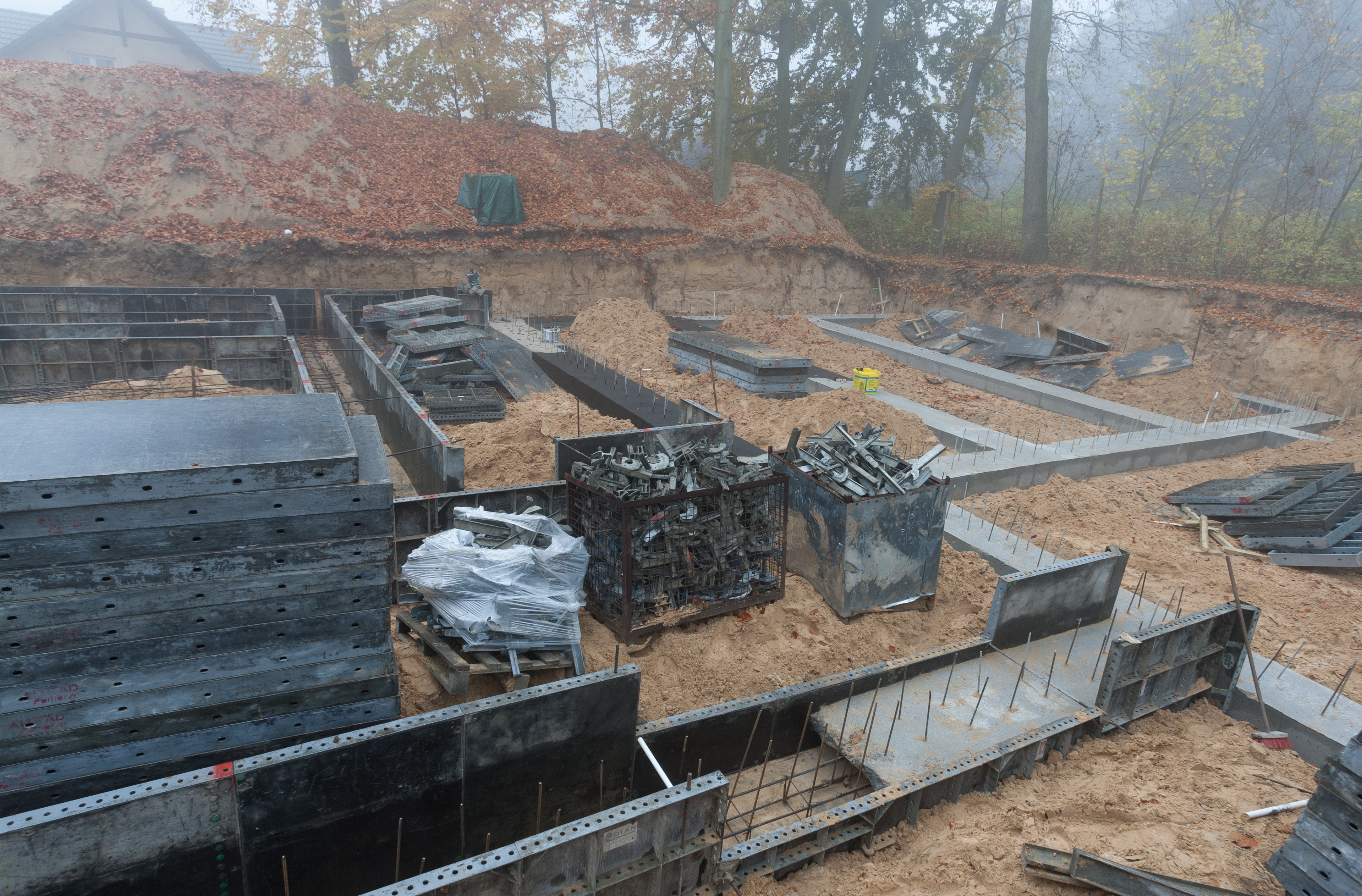 W pierwszym etapie prac wykonane zostaną: wykopy i fundamenty części dobudowanej, podbicie ław fundamentowych istniejącego budynku, ściany fundamentowe, ściany piwnic i szybu dźwigu w poziomie piwnic, izolacja przeciwwilgociowa ław, ścian fundamentowych i piwnic, stropy żelbetowe nad piwnicami, wymurowane będą ściany parteru części garażowej, strop nad częścią garażową oraz bieg schodów żelbetowych.