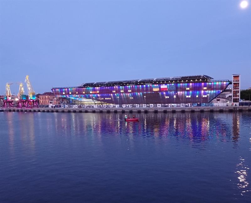 Budynek Morskiego Centrum Nauki w tęczowych barwach