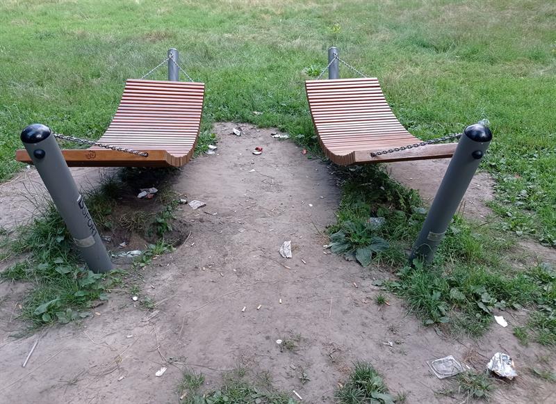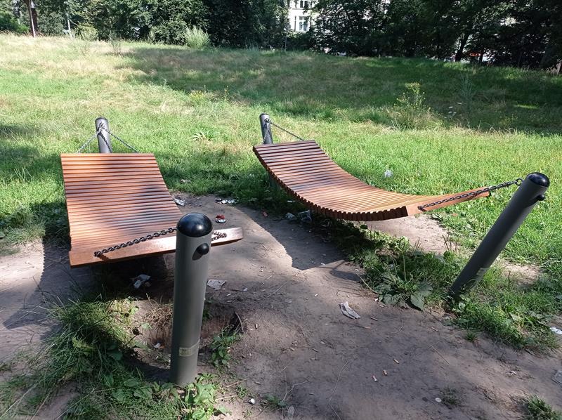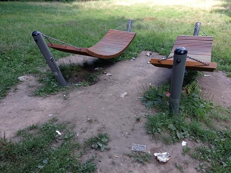 Spełniają swoją rekreacyjną funkcję i są w świetnym stanie, choć ich otoczenie pozostawia wiele do życzenia - mowa o hamakach, jakie w parku Żeromskiego pojawiły się dzięki realizacji jednego z projektów Szczecińskiego Budżetu Obywatelskiego.