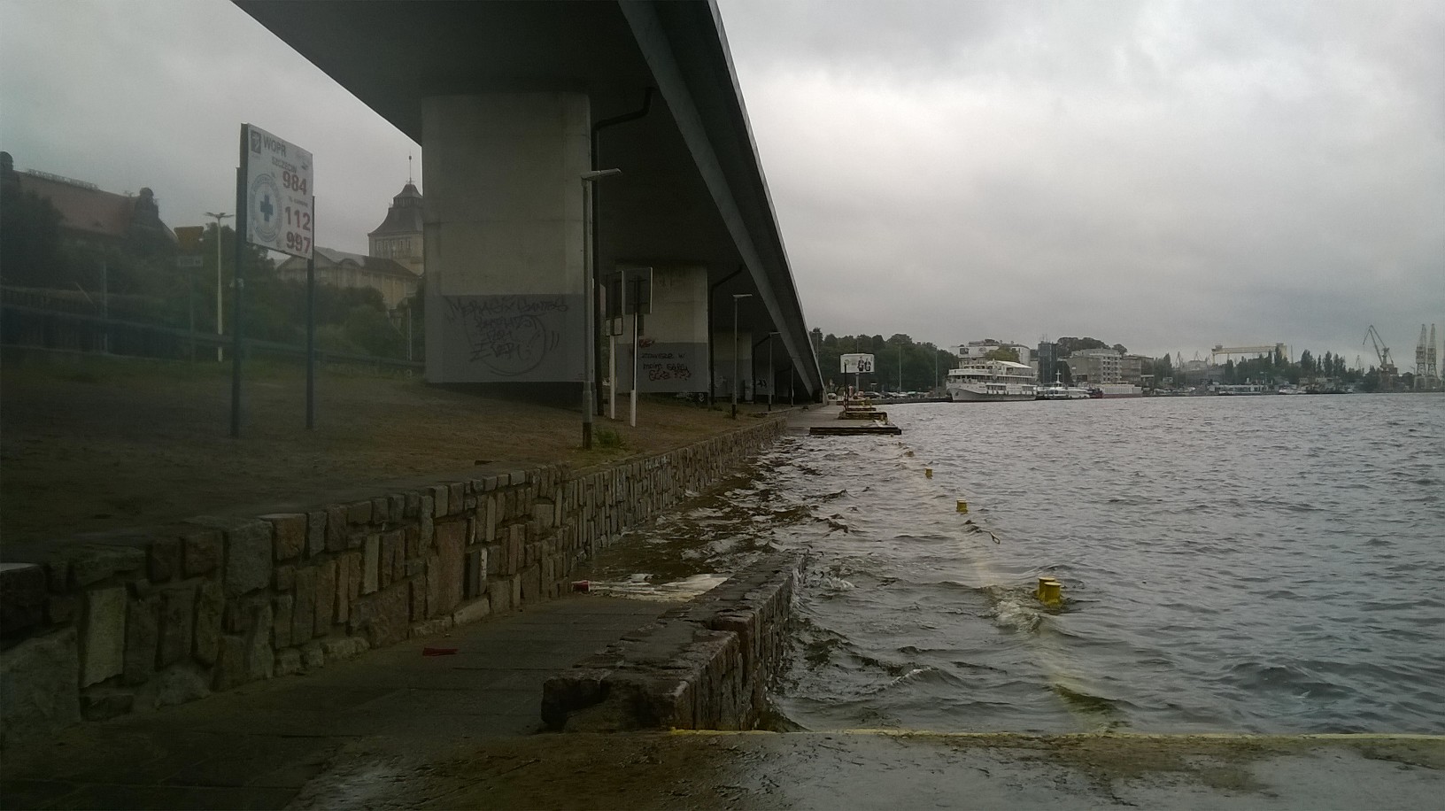 Wywołany przez cofkę podwyższony stan Odry spowodowała, że w nocy ze środy na czwartek woda w niektórych miejscach zalała szczecińskie bulwary. Rano pod woda wciąż znajdował się odcinek deptaka przy ul Jana z Kolna.