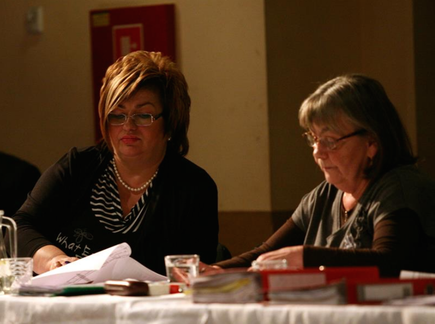 Na zdjęciu:Burmistrz J. Ferensztajn (po lewej) i skarbniczka U. Olech odpowiadają za katastrofalny wynik kontroli.