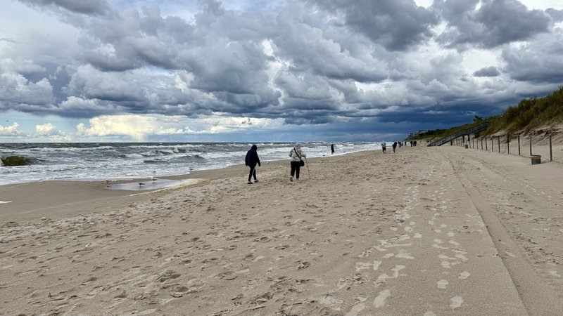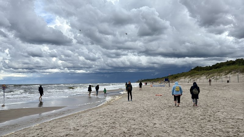 Pomimo niesprzyjającej pogody na plaży wciąż wypoczywa sporo osób, chociaż nie ma już mowy o klasycznym plażowaniu. Nadal wielu wczasowiczów decyduje się na nadmorskie spacery i odpoczynek na piasku.