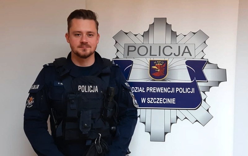 Na zdjęciu: St.post. Paweł Kędzierski, funkcjonariusz z Oddziału Prewencji Policji w Szczecinie.