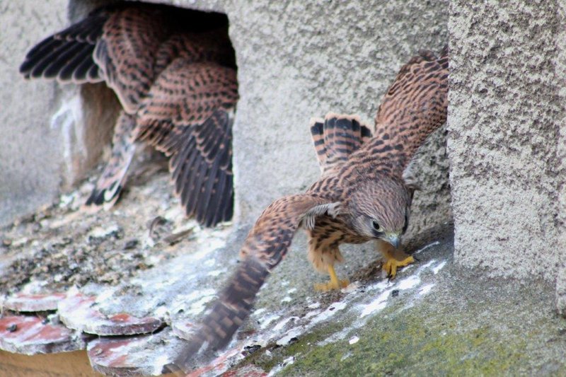 Po blisko dwóch miesiącach pobytu w gnieździe, znajdującym się we wnęce gmachu magistratu, sokoły pustułki odleciały w świat. Zwolnione przez nie miejsce nie zostało puste, gdyż szybko zajęli je nowi lokatorzy.