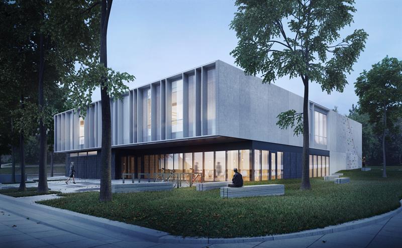 Teren wokół także będzie zagospodarowany. Na zewnątrz znajdzie się scena z miejscami do siedzenia dla ok. 100 osób, ścianka wspinaczkowa dla dzieci, ogródek kawiarniany itp.