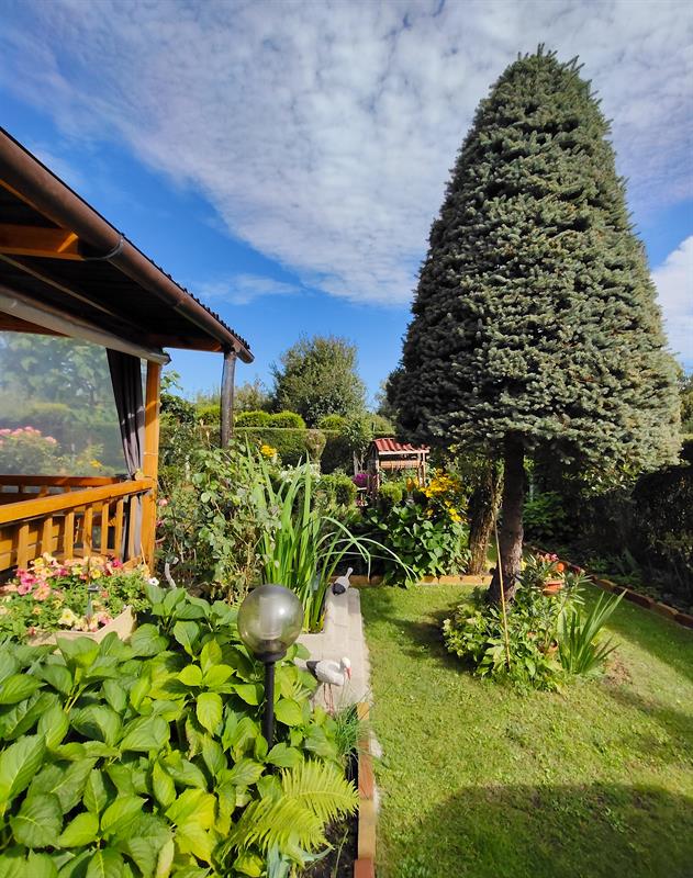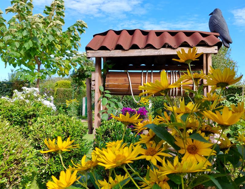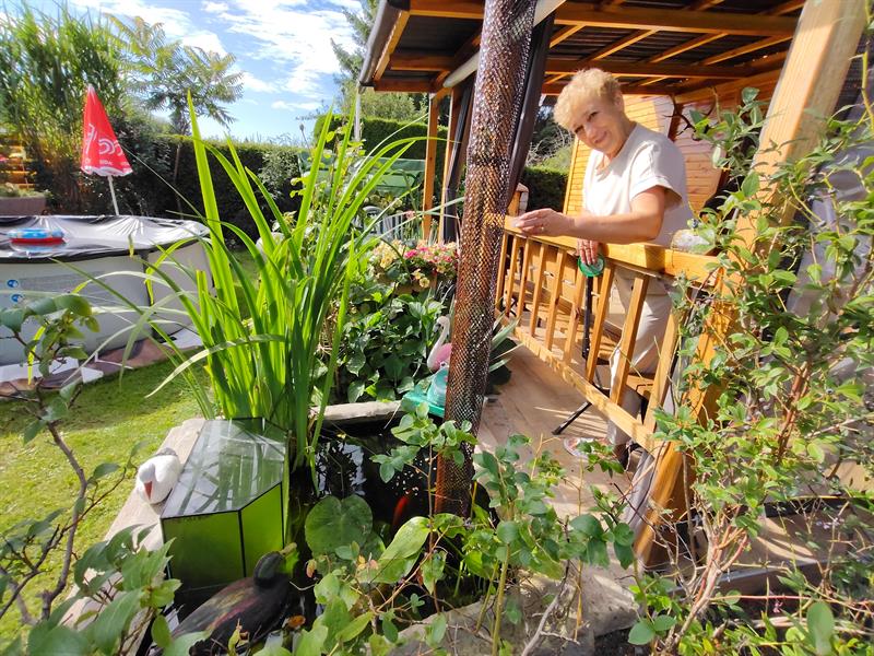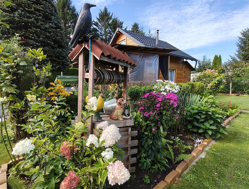 - Dopiero w ub.r. podnieśliśmy dach altany i urządziliśmy rzeczywiście tak, jak chcieliśmy. Mamy w niej pokój, w którym możemy spędzać czas niepogody, wewnętrzną kuchnię, antresolę. Ściany altany mąż ocieplił deskami. Zbudował zadaszony taras, przy którego stole zasiadamy z dziećmi i wnukami do wspólnych posiłków - mówi Janina Perowicz, choć lista mile widzianych gości jest znacznie dłuższa: nie przez przypadek, lecz dlatego, że gospodarze fantastycznie gotują, wszak oboje są kucharzami z pasją. - Właściwie wszystko, co mamy na działce mąż zbudował: zaplanował i sam wykonał. Nie tylko altanę, ale również oczko wodne, plenerową kuchnię z kociołkiem, dekoracyjną imitację studni itd. Naprawdę spełnia się w majsterkowaniu na działce.