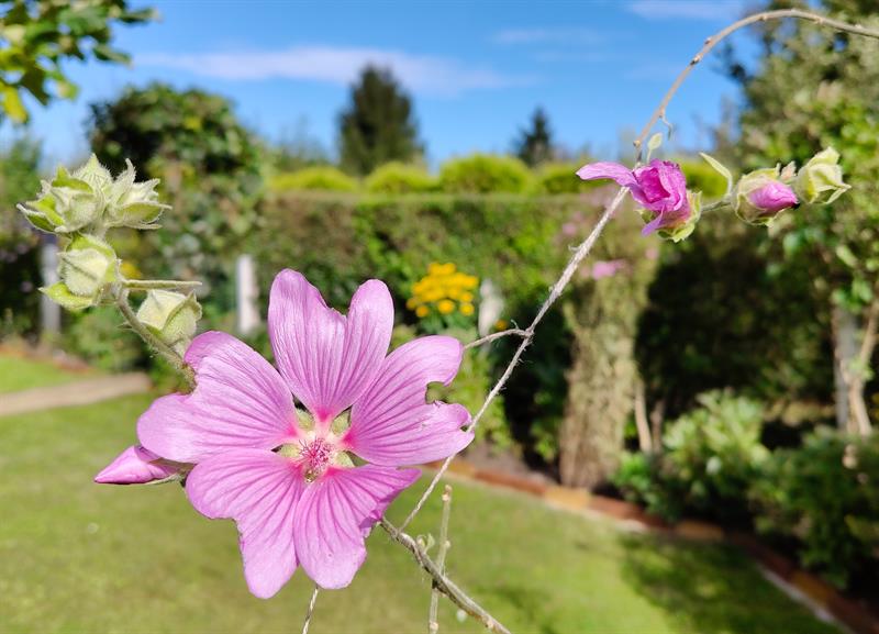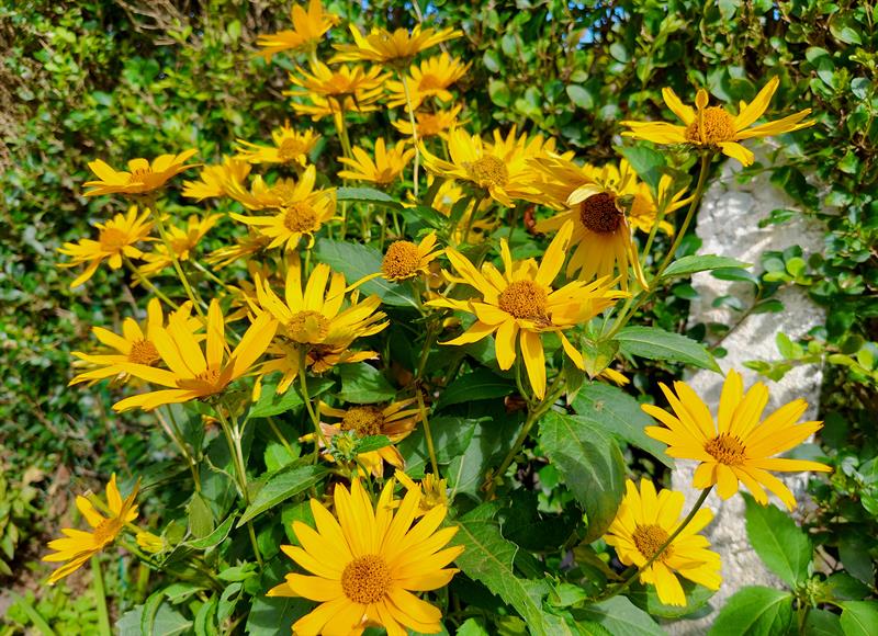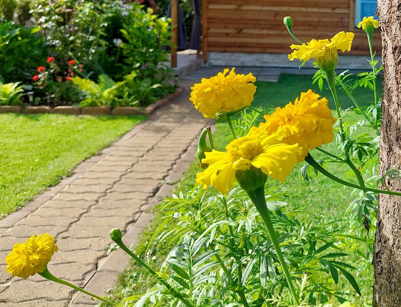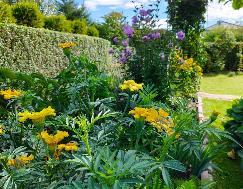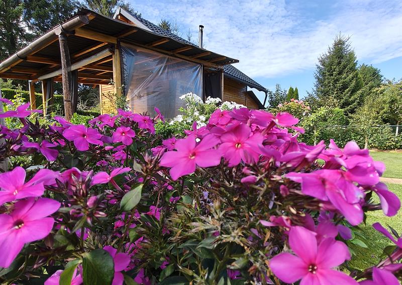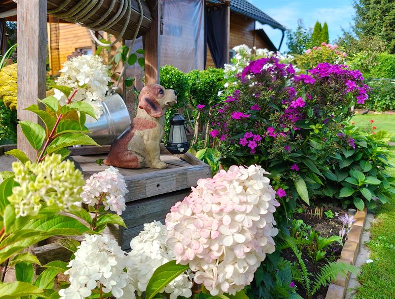 - Sezon zaczynamy krokusami, przebiśniegami, żonkilami i tulipanami. Posadziliśmy wisterię, więc liczę, że może w przyszłym roku również wiosną zakwitnie. Potem nam rozkwitają lilie cesarskie i piwonie. Przekwitłe pąki róż usuwam na bieżąco, więc kwitną nam cały sezon. Równie długo ogród zdobią hortensje w odmianach. Natomiast plamy żywych kolorów wprowadzają głównie rośliny jednoroczne, jak choćby surfinie i pelargonie. Choć również odmiany hibiskusów, żeniszki, mieczyki i mnóstwo innych kwiatów. Na finał sezonu mamy rudbekie, wrzosy, rozchodniki i astry - opowiadają pp. Perowiczowie.