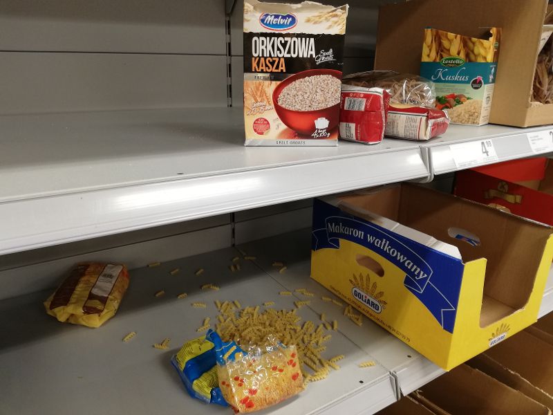 - Ludzie się przestraszyli, ale wydaje mi się, że to przesada - mówi kobieta przed osiedlowym sklepem. - Wiem, że jest epidemia, jest zagrożenie, jednak nie panikuję. Powinniśmy unikać tłumów, lepiej nie bywać tam, gdzie nie trzeba. Nie robimy z mężem dużych zakupów, mamy o jedną sztukę produktów więcej i tyle. Dzisiaj chciałam kupić tylko coś na rosół. Bez skutku.