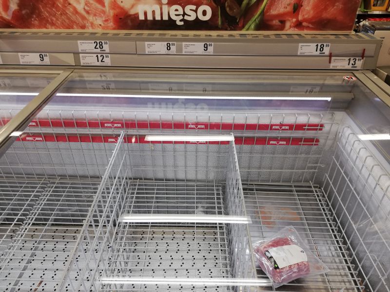 W mniejszych sklepach mięsnych do południa opustoszały lodówki.