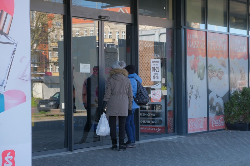 Nowością są kolejki przed wejściem do sklepów. Do niektórych placówek wpuszczano określoną liczbę osób, by uniknąć tłoku wewnątrz. Tak było m.in. przy ul. Robotniczej i w Mierzynie.