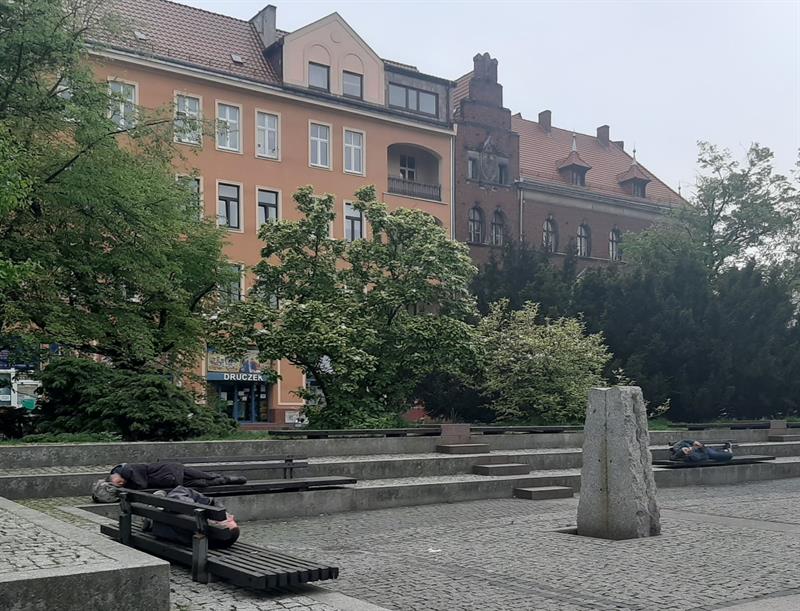 Krótki spacer po centrum Szczecina nie nastroił naszej Czytelniczki optymistycznie: śródmieście jest brudne i zaniedbane, co uwieczniła na zdjęciach. Ławki na pl. Lotników zajęte przez śpiących bezdomnych, plac Rodła tonący w śmieciach. W obu przypadkach nie jest to sytuacja nowa, a raczej stan przewlekły. Pijani mężczyźni od dawna okupują siedziska przy pomniku Colleoniego i nie ma na nich silnych, choć patrole policyjne często tu zaglądają i spisują bezdomnych.