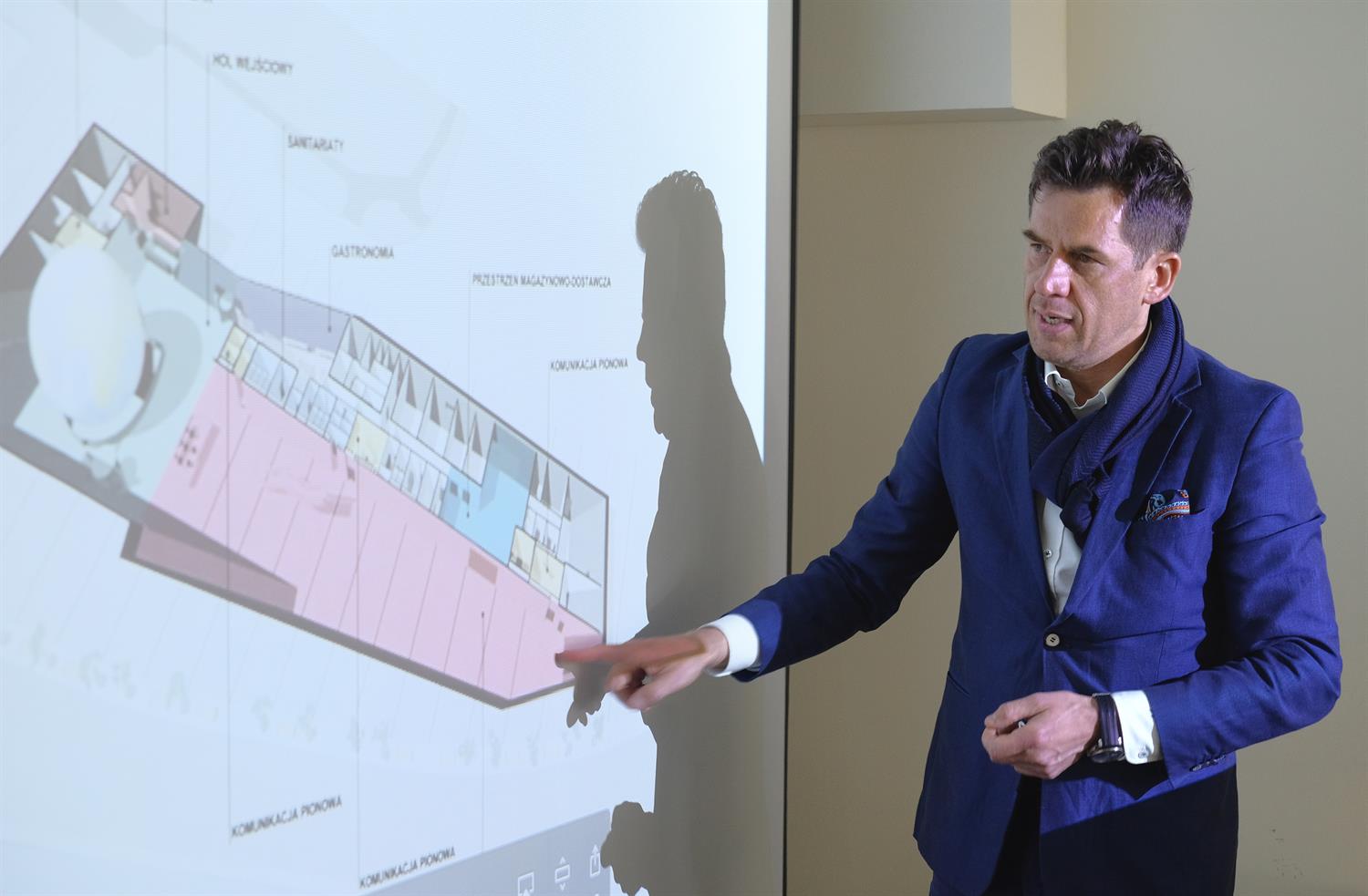 – Na pierwszym piętrze, obok przestrzeni wystawowej, będzie wejście do planetarium, sala audytoryjna oraz sale edukacyjne – przybliżał szczegóły Piotr Płaskowicki, architekt z firmy Płaskowicki & Partnerzy. – Na drugim piętrze również znajdą się wystawy, ale też blok administracyjny i zamknięcie bryły planetarium. Dach to rodzaj agory miejskiej, z przestrzenią rekreacyjną z ogródkami dla dzieci, tarasem widokowym, restauracjami.