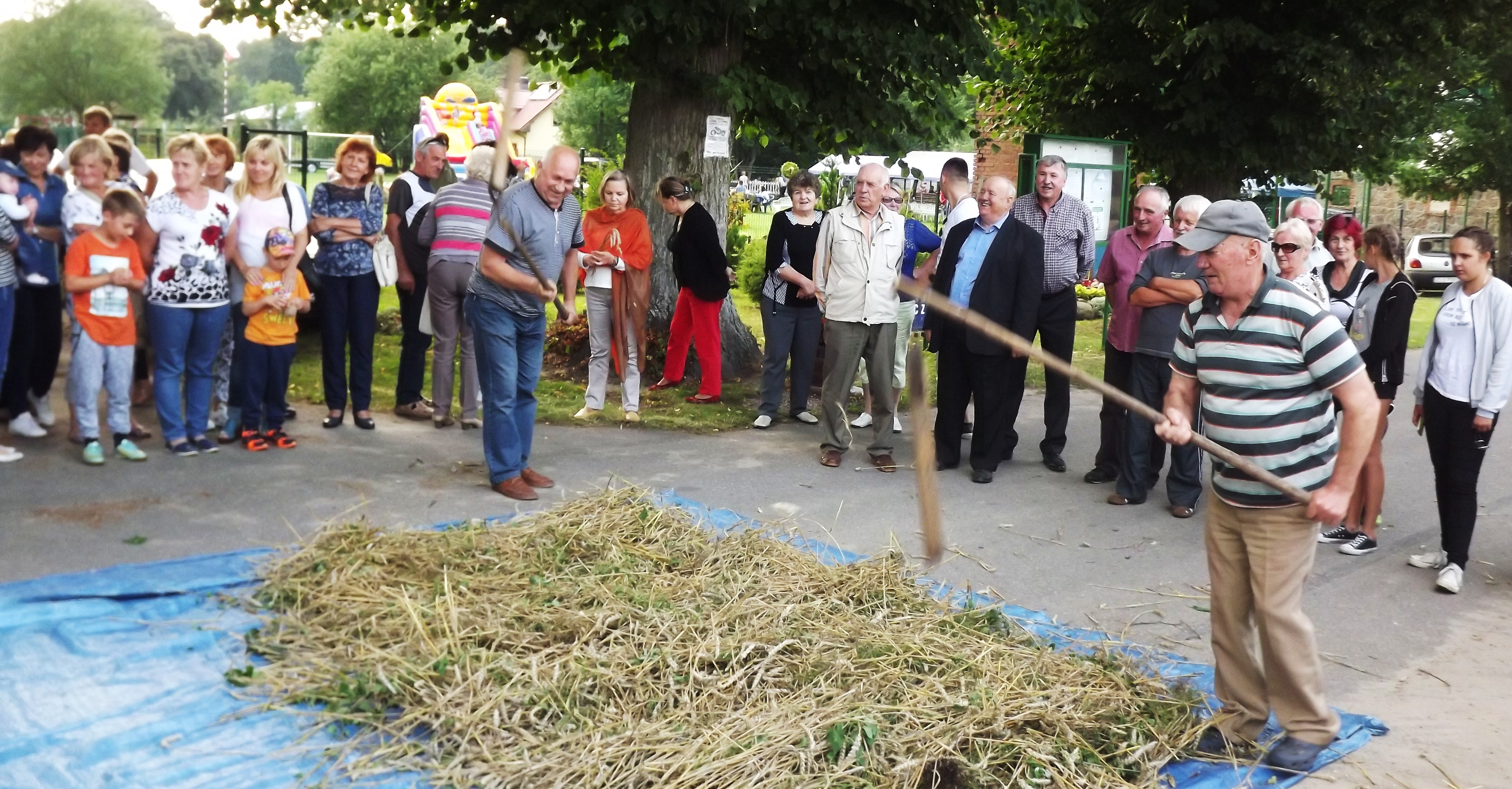 Na dobry początek odbył pokaz klepania kos. Po skoszeniu łanu pszenicy, żniwiarze chwycili za cepy. Wymłócona pszenica trafiła do rzeszota, a następnie do worka, który we wrześniu zostanie wręczony gospodarzowi gminnych dożynek. Warto dodać, że każdy z publiczności miał szansę dać popisy swoich umiejętności w klepaniu kosy, koszeniu i młoceniu zboża. Wielu wspominało, że dobrze pamiętają żniwa w czasach poprzedzających kombajny.