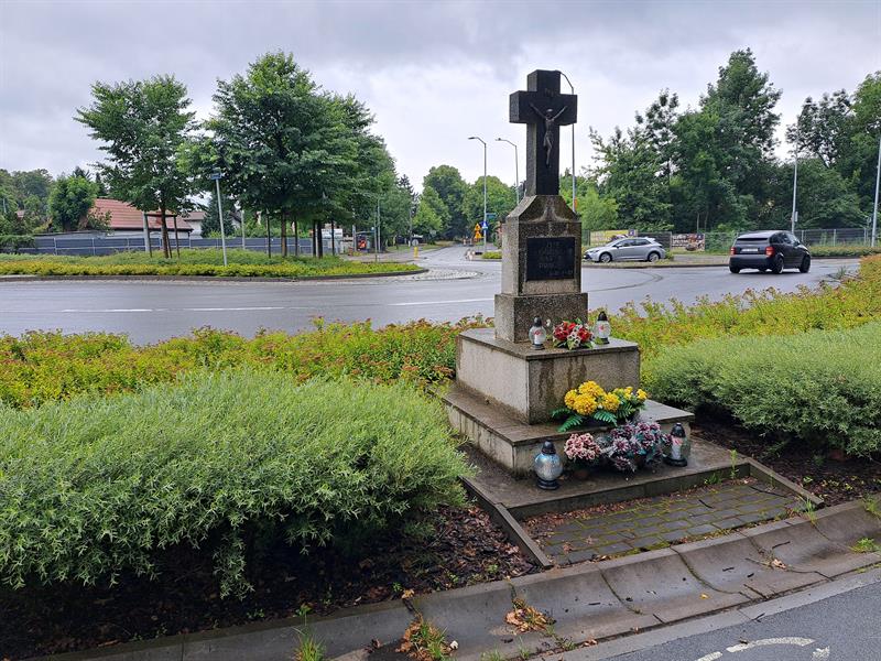 Krzyż przy rondzie Kresowian ustawiony na Krzekowie w 1947 r. i przeniesiony na rondo w 2022 r. Fot. Karol CIEPLIŃSKI