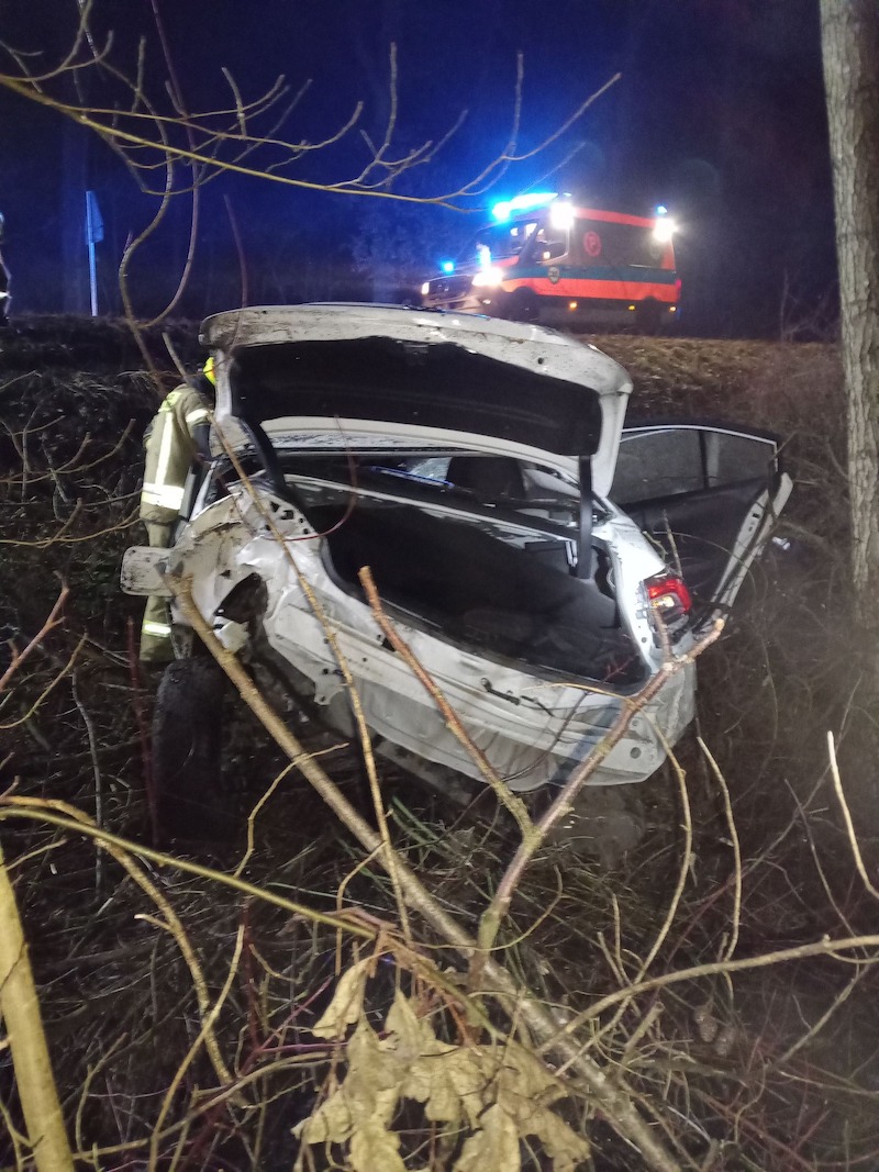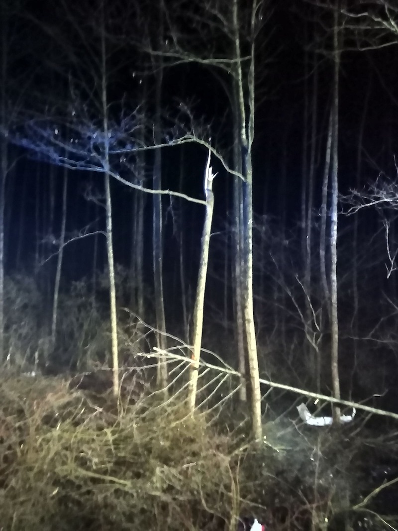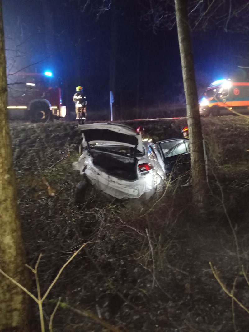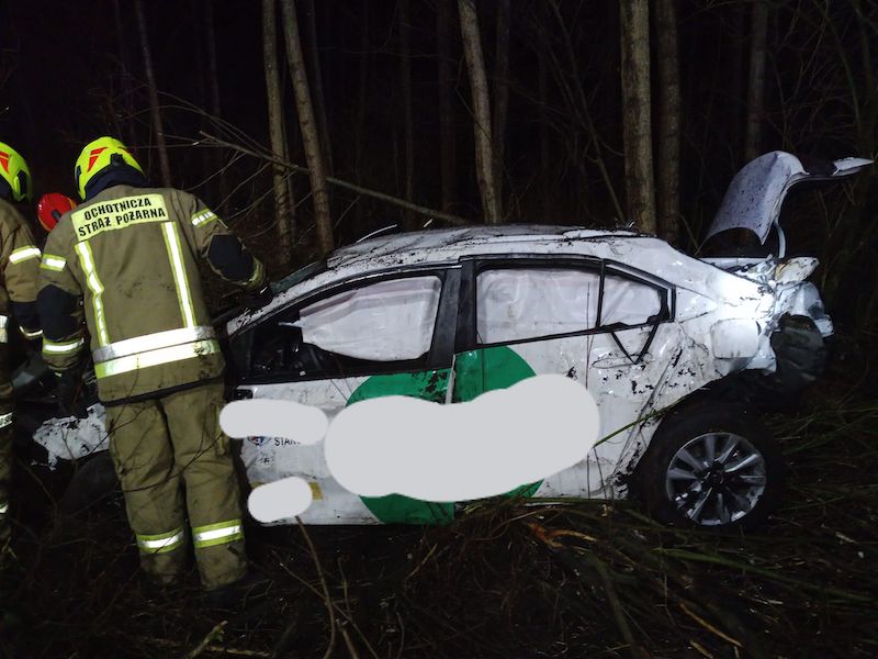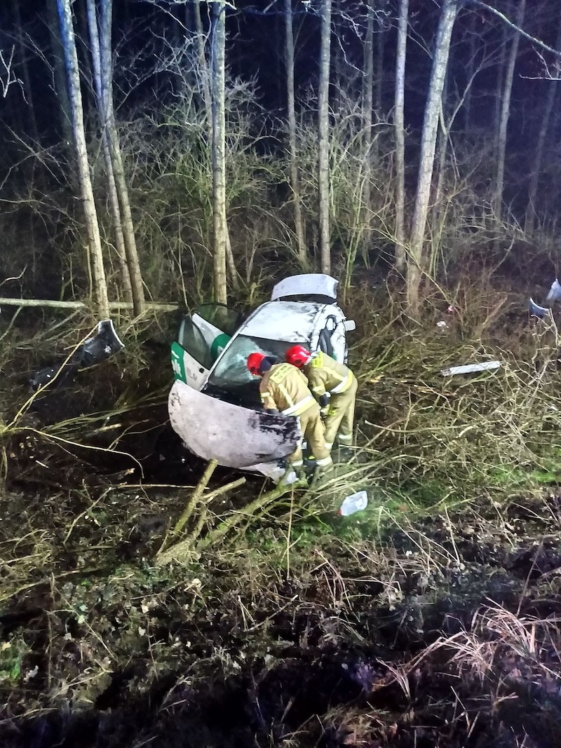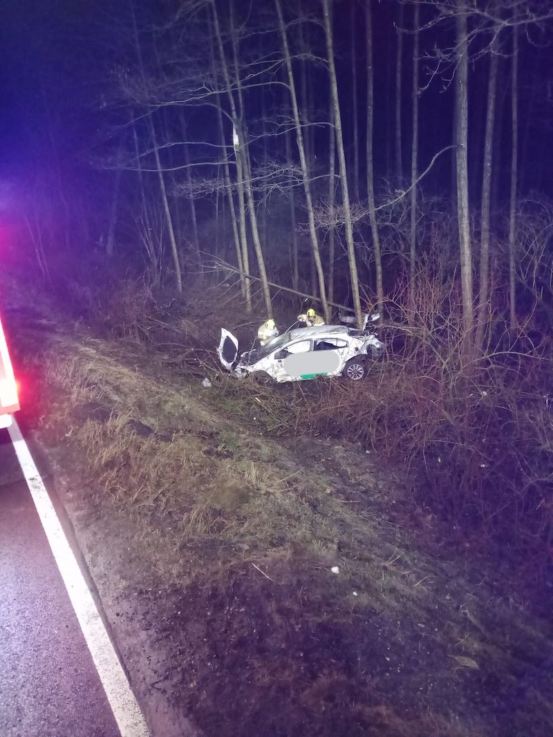 Auto wypadło z drogi krajowej nr 20 na trasie między Lisowem i Dzwonowem. Do zdarzenia doszło przed północą z 27 na 28 lutego.