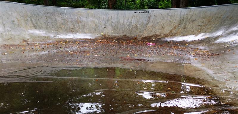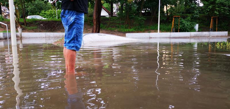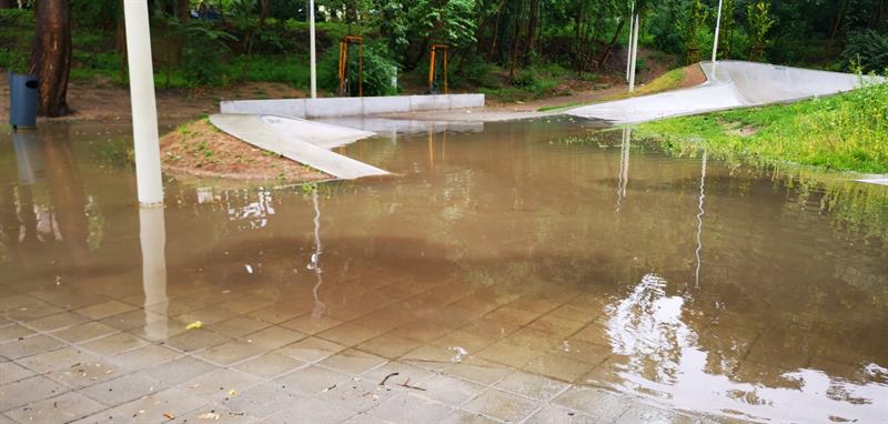 W trakcie deszczu skatepark zmienia się w błotniste rozlewisko. Po ulewie na jego żelbetowych torach pojawiają się kolejne – mniej lub bardziej widoczne – pęknięcia i rysy. Magistrat uspokaja: „obiekt może być użytkowany”.