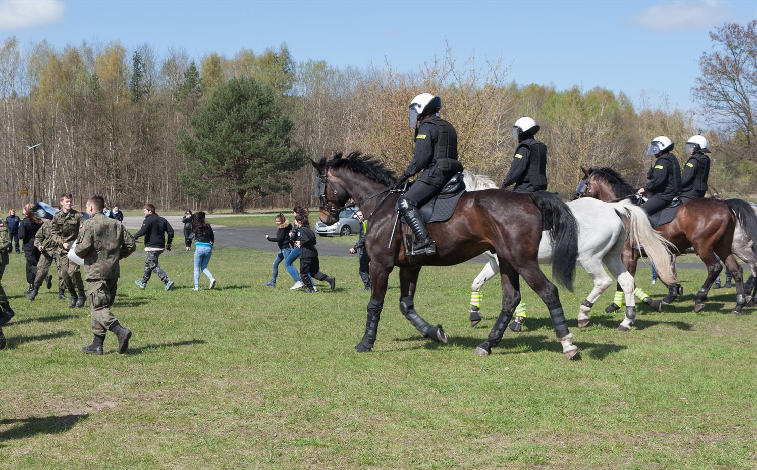 Czwartek był drugim, trudnym dniem dla czworonożnych „policjantów" uwielbiających owies, marchewkę i jabłka... Po sprawdzianie w Akademickim Ośrodku Jeździeckim Zachodniopomorskiego Uniwersytetu Technologicznego w Szczecinie, przyszedł czas na ćwiczenia na pasie taktycznym 12 Brygady Zmechanizowanej - razem z Oddziałami Prewencji.