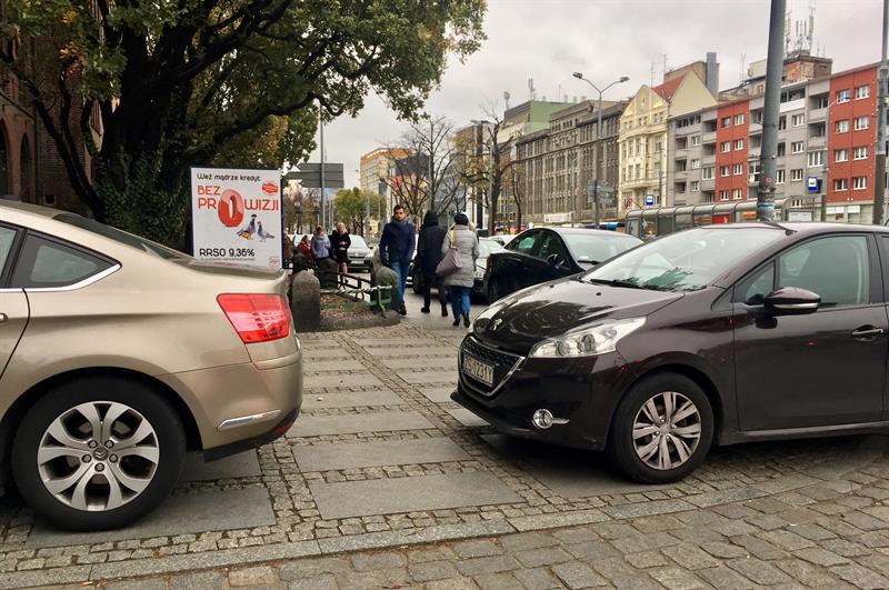 Zastawianie chodników w centrum to codzienność proszę przejść się ulicą Krzywoustego i zobaczyć parkujące samochody, a prawdziwy wysyp jest na placu Kościuszki od strony przystanku i blaszanych bud zwanych szumnie deptakiem Kościuszki- za apteką, co prawda "osłupkowano" kawałek chodnika ale nie wstawiono słupków na przystanku i przejściu więc teraz auta wjeżdżają przez przystanek i mkną jak oszalałe pod blaszane budy nie zważając na pieszych i tych co stoją na przystanku zdarzają się dni że z trudem można się przecisnąć przez samochody. Rozumiem brak miejsc do parkowania, tzw. garażowców ale plac Kościuszki to prawdziwy "dziki zachód"