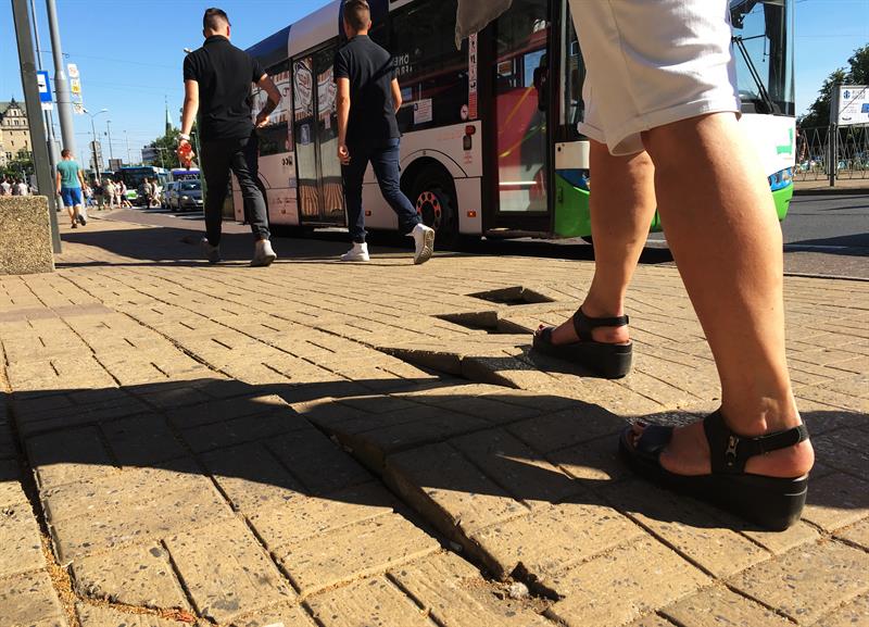 Na Bohaterów Warszawy róg Jagiellońska, przystanek w strone miasta tez chodnik się wybrzuszył.