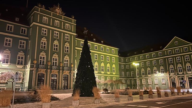 Przed szczecińskim magistratem na pl. Armii Krajowej stoi już bożonarodzeniowe drzewko. Od najbliższego piątku choinkę można będzie podziwiać w pełnej krasie.