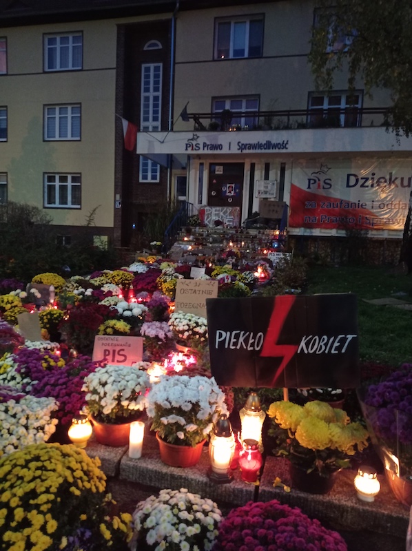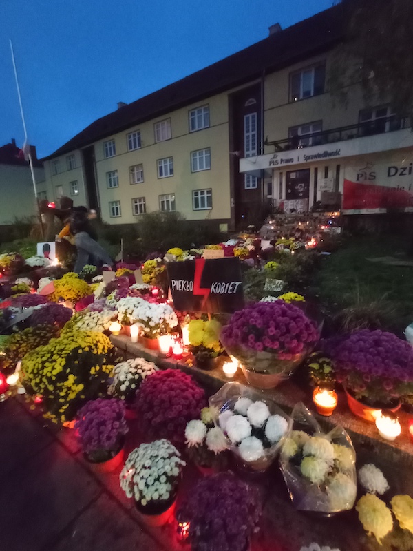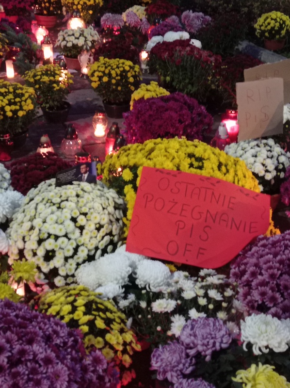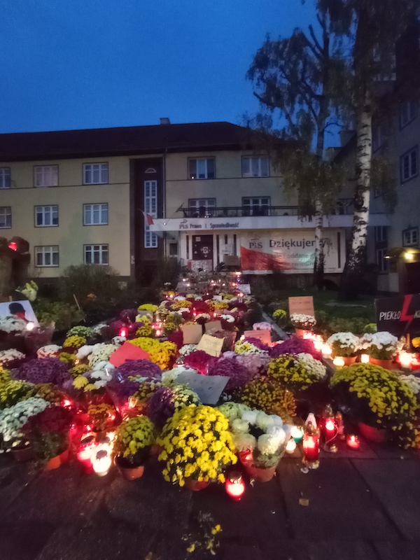 Mieszkańcy naszego miasta w weekend odwiedzali handlujących kwiatami i zniczami, którzy zostali z towarem, by ich wspomóc po decyzji Mateusza Morawieckiego o zamknięciu cmentarzy na chwilę przed dniem Wszystkich Świętych. Cześć zakupionego towaru trafiło właśnie przed siedzibę PiS. To kolejna forma okazania niezadowolenia wobec działań partii rządzącej.