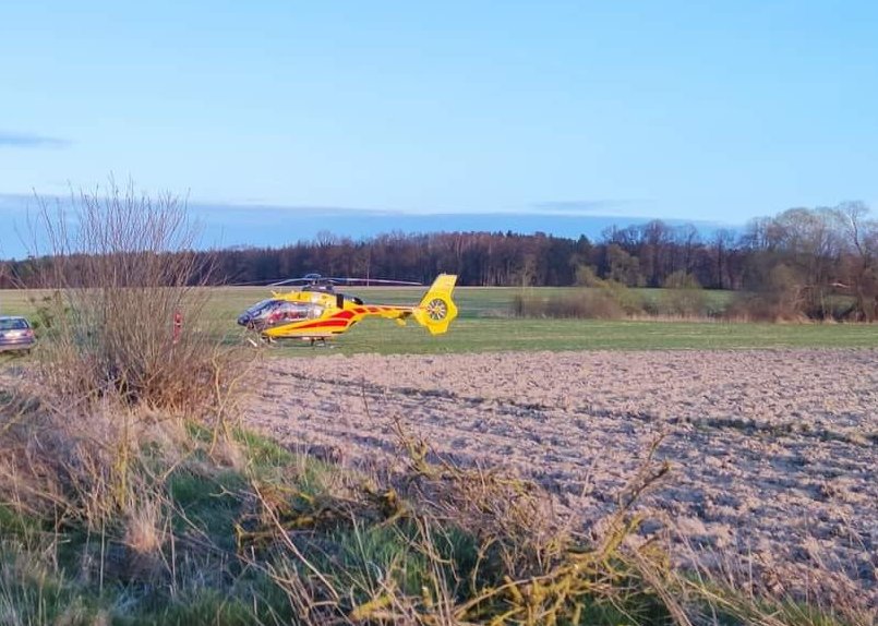 Strażakom udało się wydostać rannego mężczyznę spod pojazdu. Został przetransportowany przez śmigłowiec Lotniczego Pogotowia Ratunkowego do szpitala.