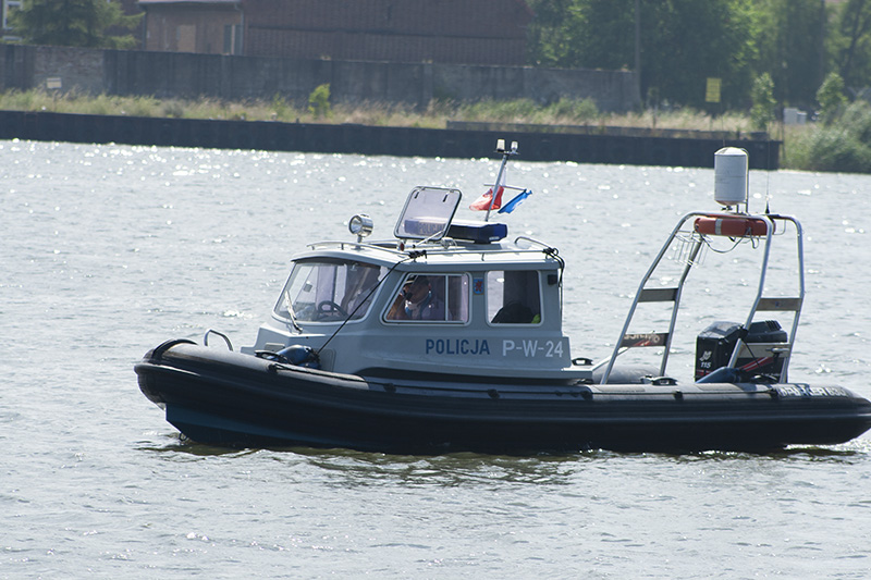 Dziś na miejsce zdarzenia miał przybyć specjalistyczny sonar z Białego Boru, ale wcześniej policjanci - patrolujący brzeg Dziwny w Dziwnowie - łodzią widoczną na zdjęciu, znaleźli pływające ciało po przeciwnej stronie stacji benzynowej. Pojazd z sonarem zawrócono z trasy.