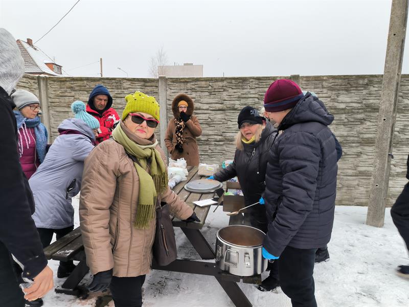 W każdą sobotę, od początku listopada do końca lutego, na terenie Rady Osiedla nr 2 w Policach (przy ul. Marii Konopnickiej 2) można się posilić. Gorącym jedzeniem częstują wolontariusze lokalnego stowarzyszenia „Krok po Kroku Police”. „Wydawka” (jak sami to roboczo nazywają) rusza w samo południe. Korzystających przybywa z roku na rok (to już trzeci) i z tygodnia na tydzień.
