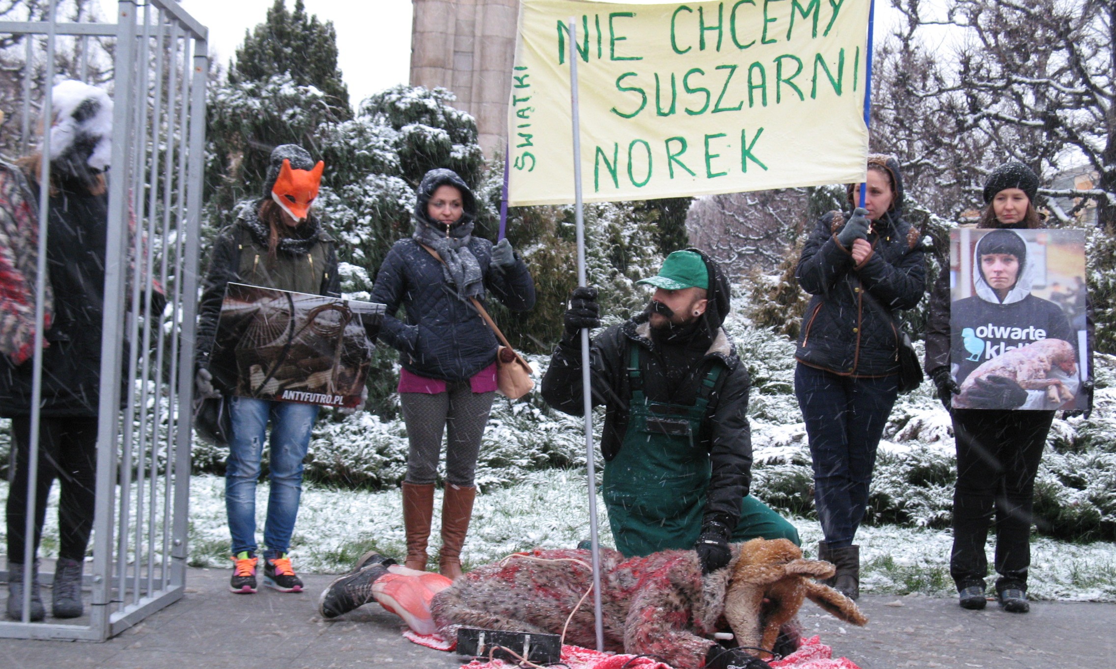 - W naszym kraju co roku zabija się kilka milionów zwierząt tylko po to, żeby obedrzeć je z futra. Pomimo opublikowania licznych nagrań ukazujących te tragedie oraz protestów społecznych przeciwko fermom, przemysł futrzarski za przyzwoleniem polityków wciąż się rozrasta - mówił Łukasz Musiał. - Tyle bezsensownego, niepotrzebnego cierpienia. W dyktacie mody dla nielicznych. Domagamy się zakazu hodowania zwierząt na futra!