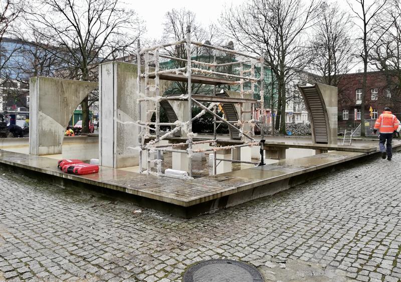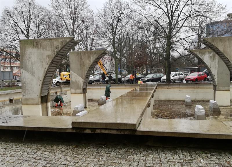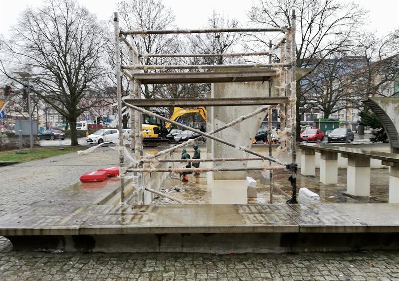 Ogrodzenie, ciężki sprzęt i pierwsze rozbiórki - na dobre ruszył remont „wodnych bram" na pl. Zwycięstwa. Prace realizuje szczecińska firma NIWA. Mają potrwać 150 dni. Reanimacja jednej z najmłodszych miejskich fontann pochłonie 959 790,72 złotych, czyli niemal tyle, ile przed siedmioma laty jego budowa.