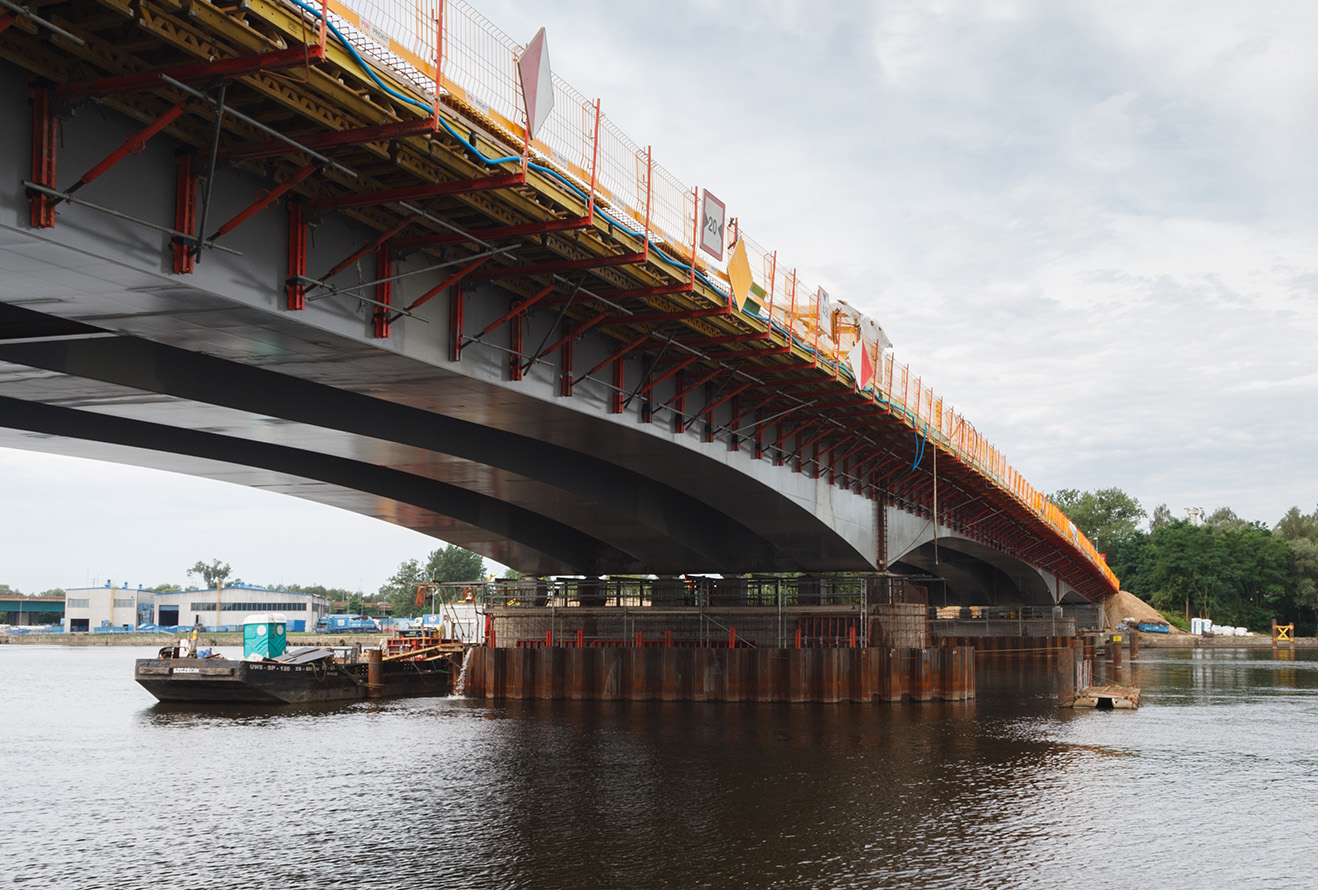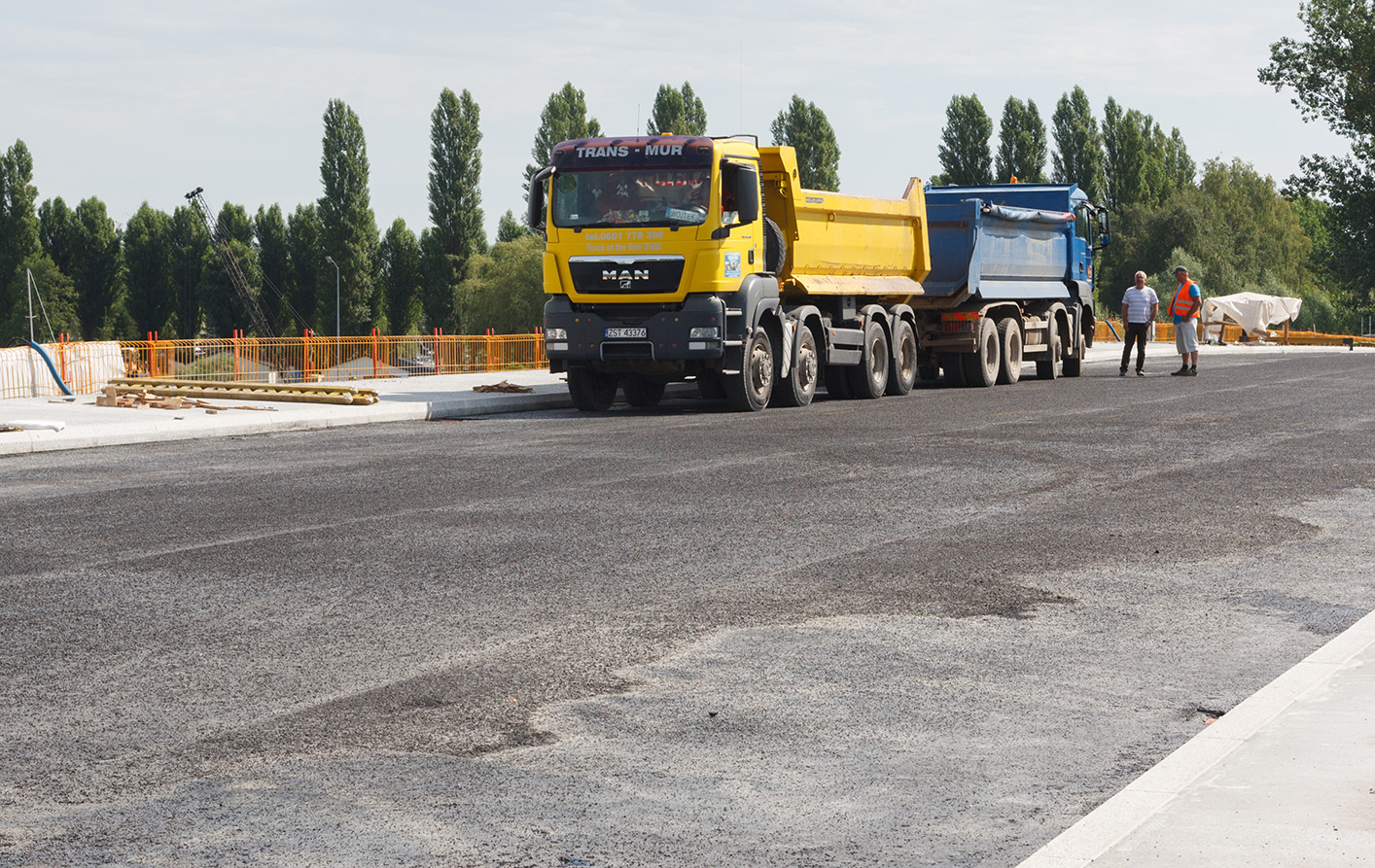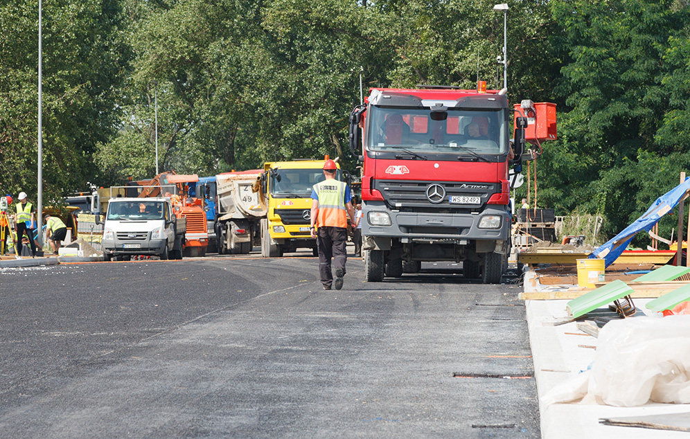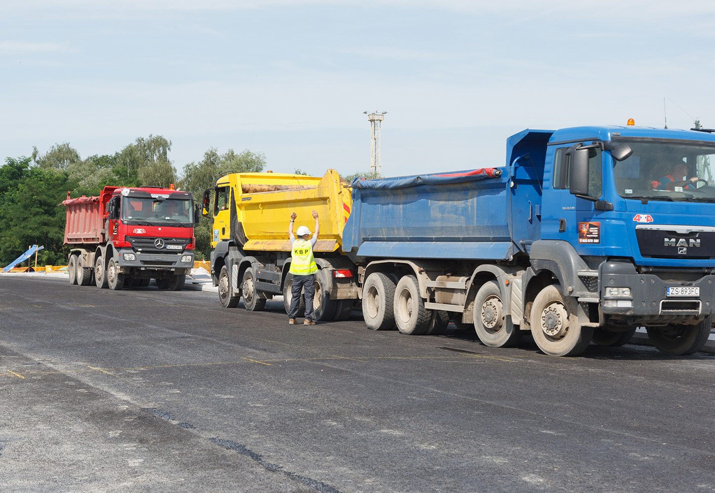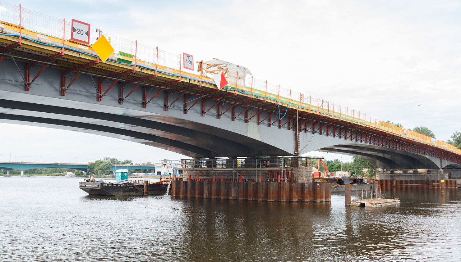 Na zdjęciu: Most Cłowy pomyślnie przeszedł tzw. statyczne próby obciążeniowe. Jednorazowo wjechało na niego szesnaście ciężarówek ważących w sumie ponad 500 ton.