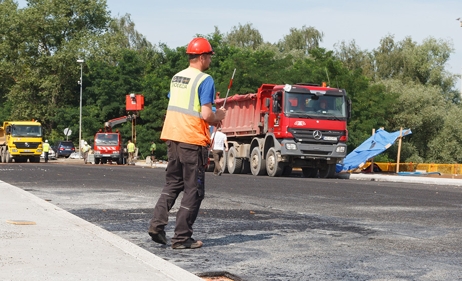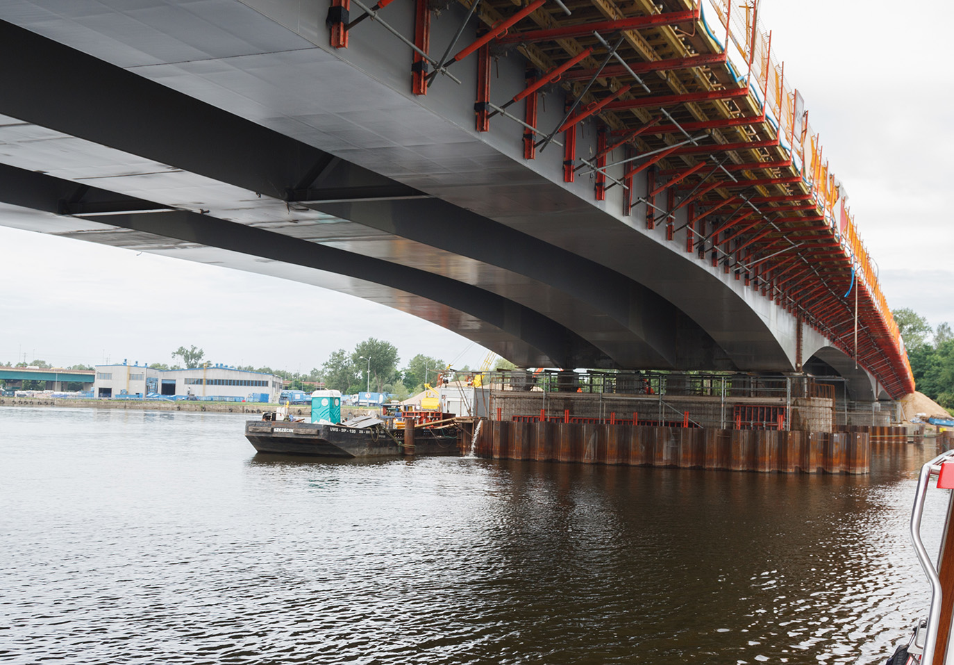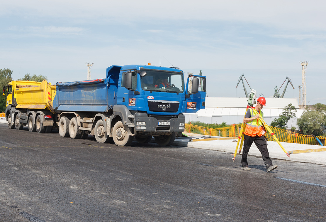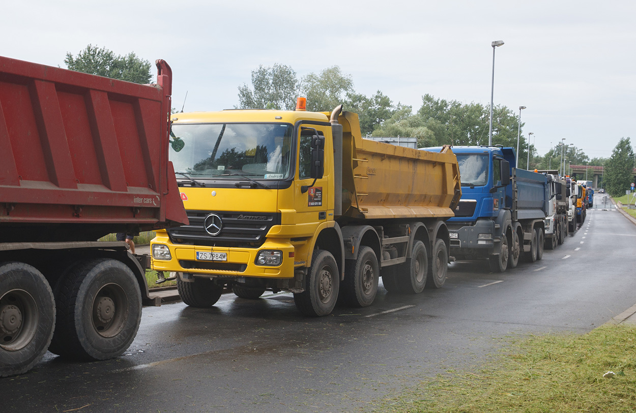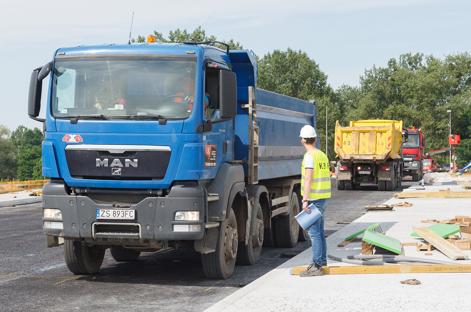Na zdjęciu: Most Cłowy pomyślnie przeszedł tzw. statyczne próby obciążeniowe. Jednorazowo wjechało na niego szesnaście ciężarówek ważących w sumie ponad 500 ton.