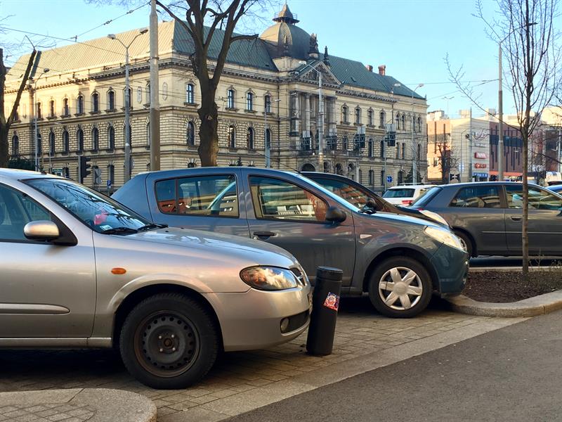 Gdyby mogli, to wjechaliby pod ściany budynków: przez zieleńce, alejki rowerowe, przez chodniki. Ale nie mogą, więc parkują auta na styk, zderzak, na silniejszego. Z efektem - jak widać choćby w al. Niepodległości - gdzie już dawno nie ma ani jednego prostego separatora. Oczywiście, nie wszyscy kierowcy tak parkują. Większość zachowuje klasę i miejskich mebli nie niszczy.