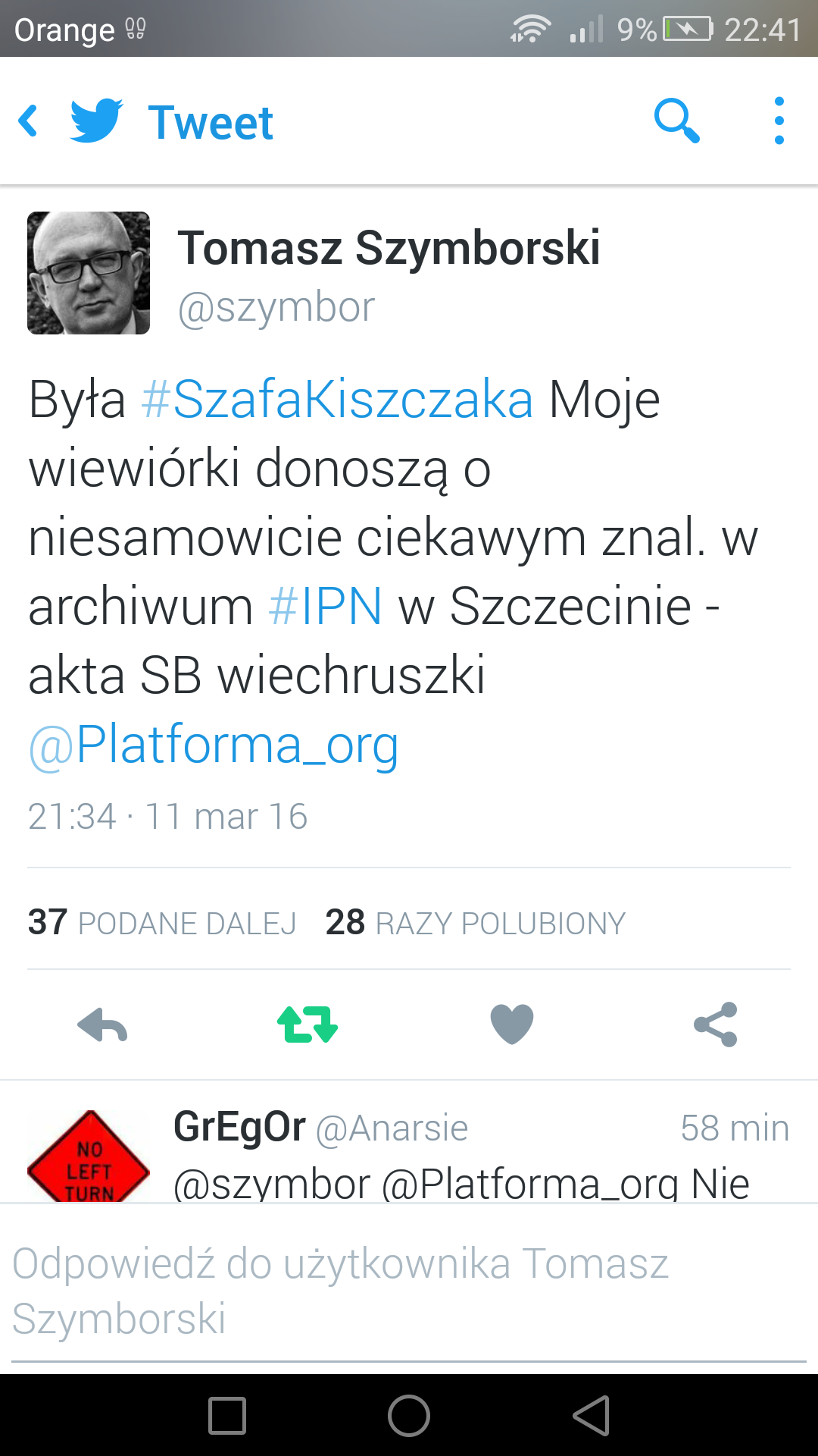 W piątkowy wieczór na Twitterze pojawiła się informacja, że w szczecińskim Instytucie Pamięci Narodowej dokonano ciekawych odkryć na temat "wierchuszki Platformy Obywatelskiej". Wątek ten zasygnalizował publicysta Tomasz Szymborski, nowy dyrektor TVP Katowice. Ciekawe, czy jest to tylko prowokacja, czy mamy do czynienia z prawdziwą sensacją. Niebawem postaramy się dowiedzieć czegoś więcej.
