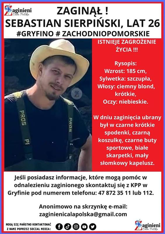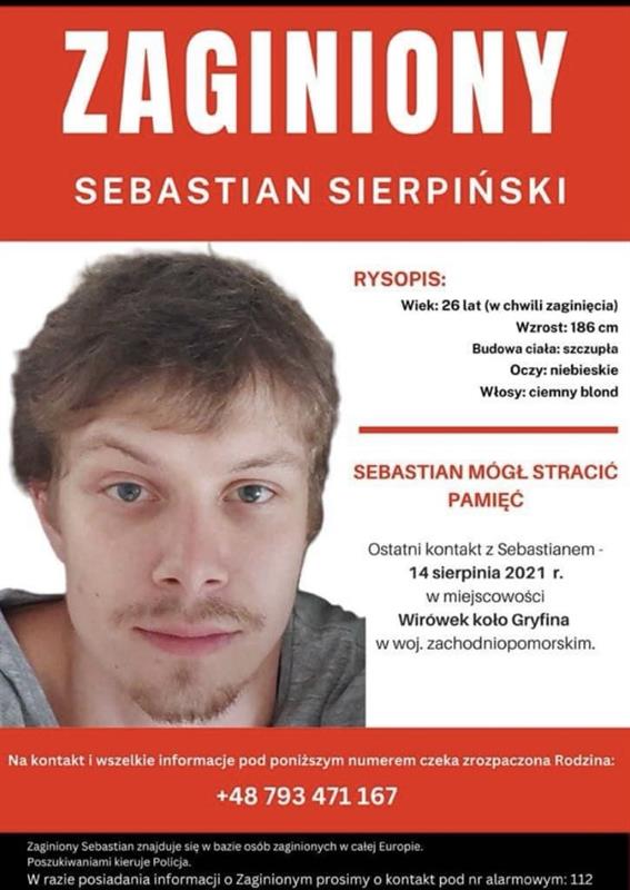 W rejestrze policyjnym Sebastian Sierpiński nadal widnieje jako osoba zaginiona.